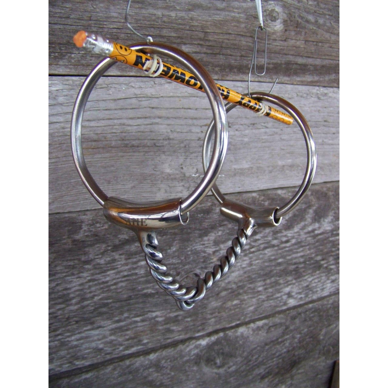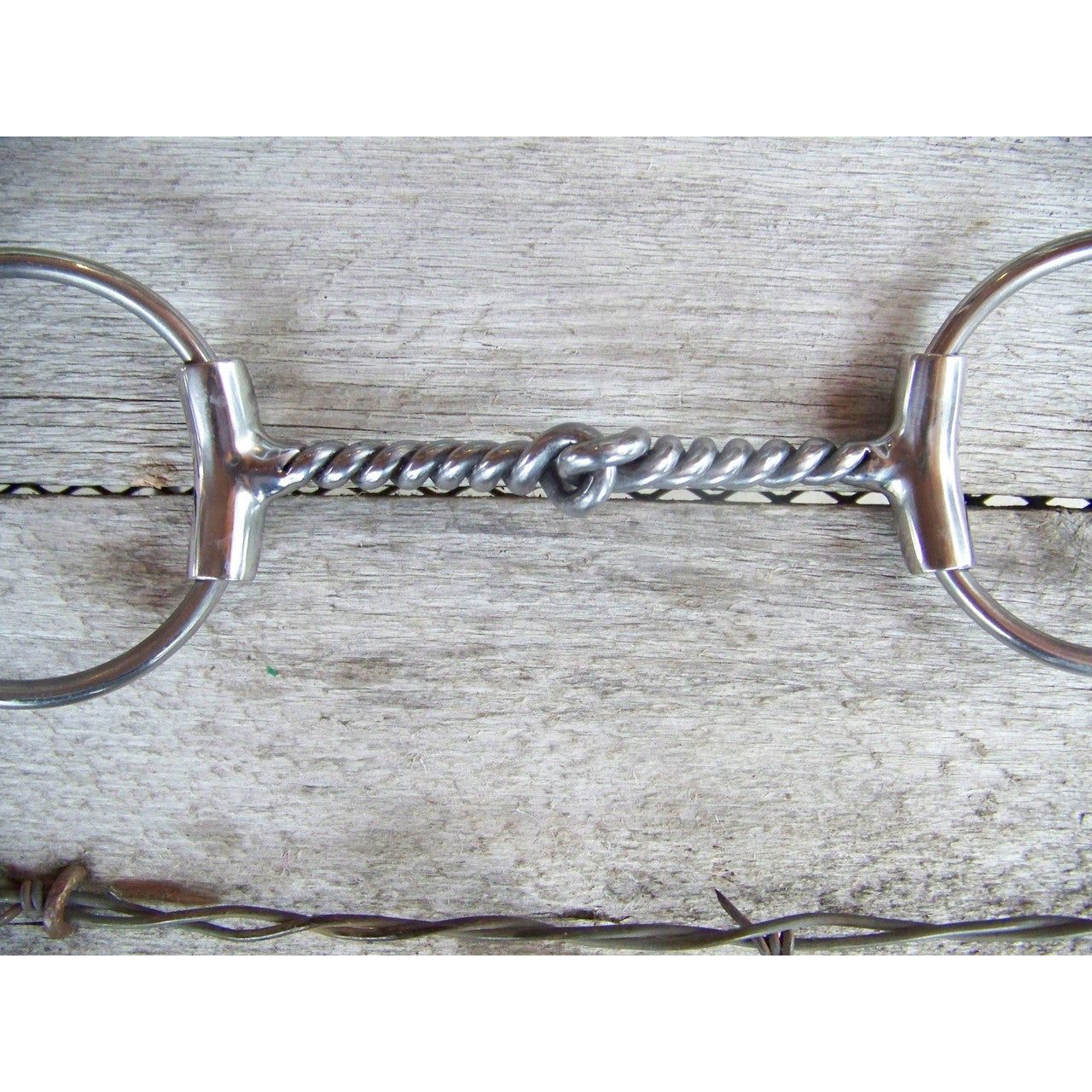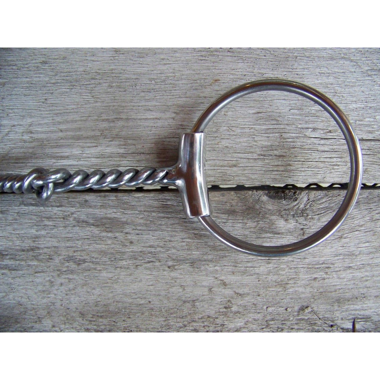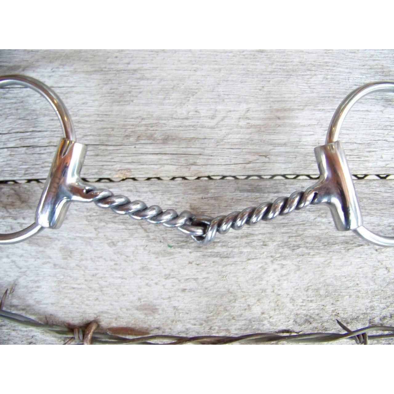 O-Ring snaffle with sleeves and twisted curved mouth. Mouth measures 5" across. Rings are 3".