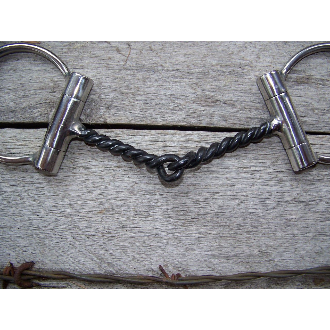 Stainless steel western dee bit with a 5" sweet iron twisted wire mouth. Great for the young intermediate horse. (Strong Effect)