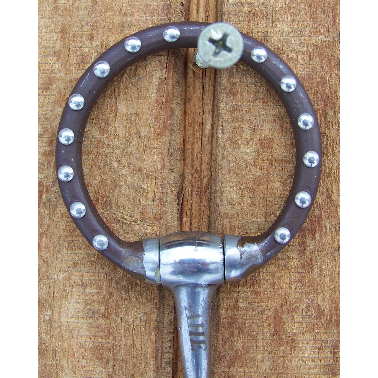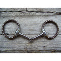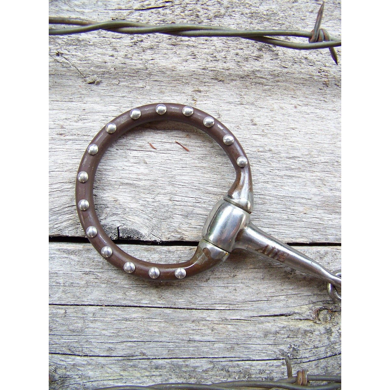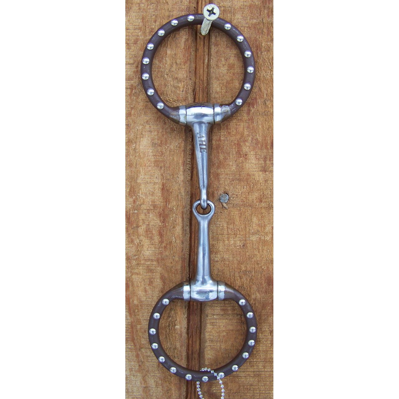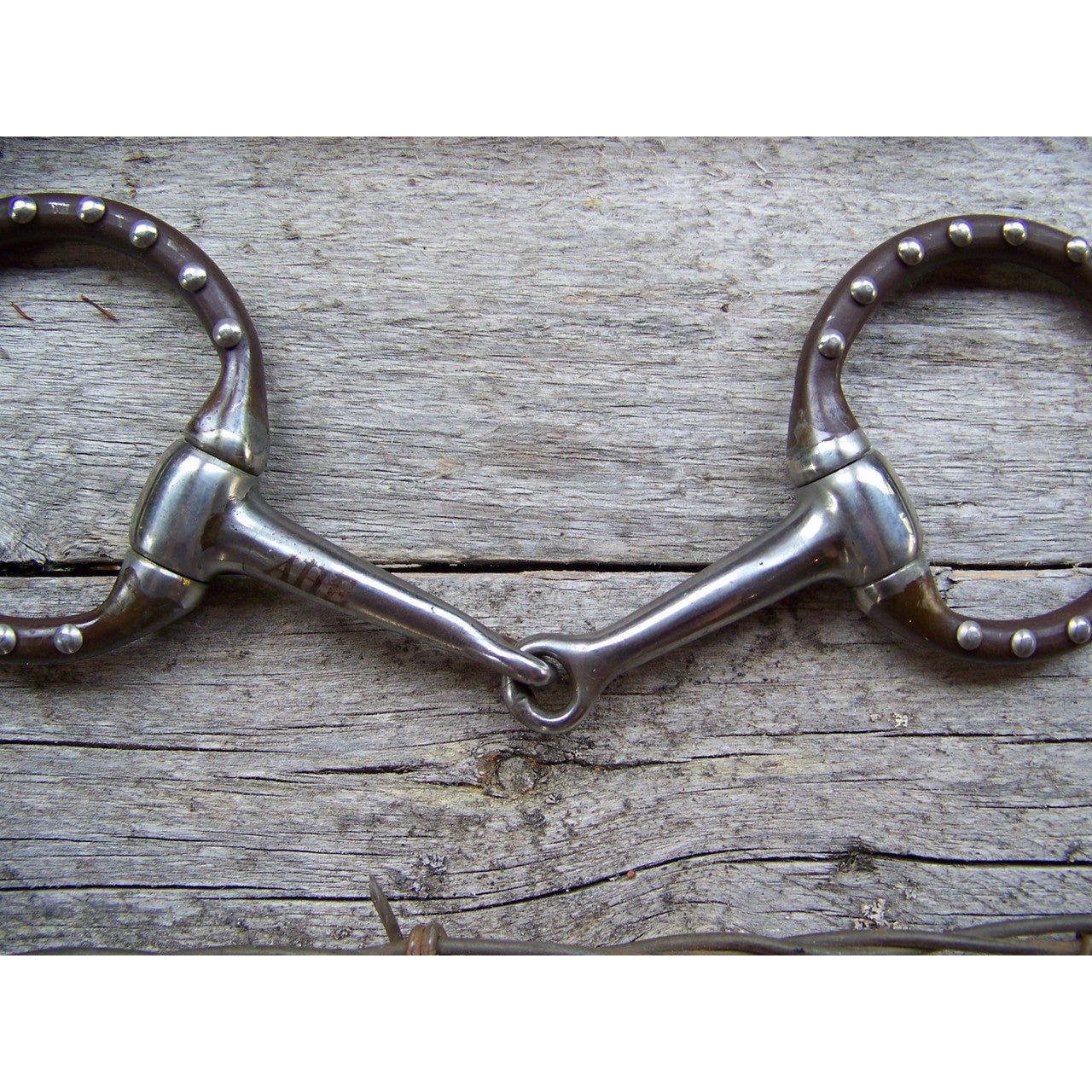Stainless steel snaffle with copper inlay dee ring snaffle. Antique brown with stainless steel dots. Mouth is 3 3/4" Rings are 2".