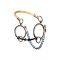 Wonderful for older colts, young horses or any soft mouthed horse. Contacts the nose to tuck it, then gently picks up the mouth until the curb tightens for gentle but all over nose, bars, lips, chin, and face control. Works well with any type of martingale or draw reins. Sweet iron will rust into a light patina and encourages salivation to create a supple feeling mouth.