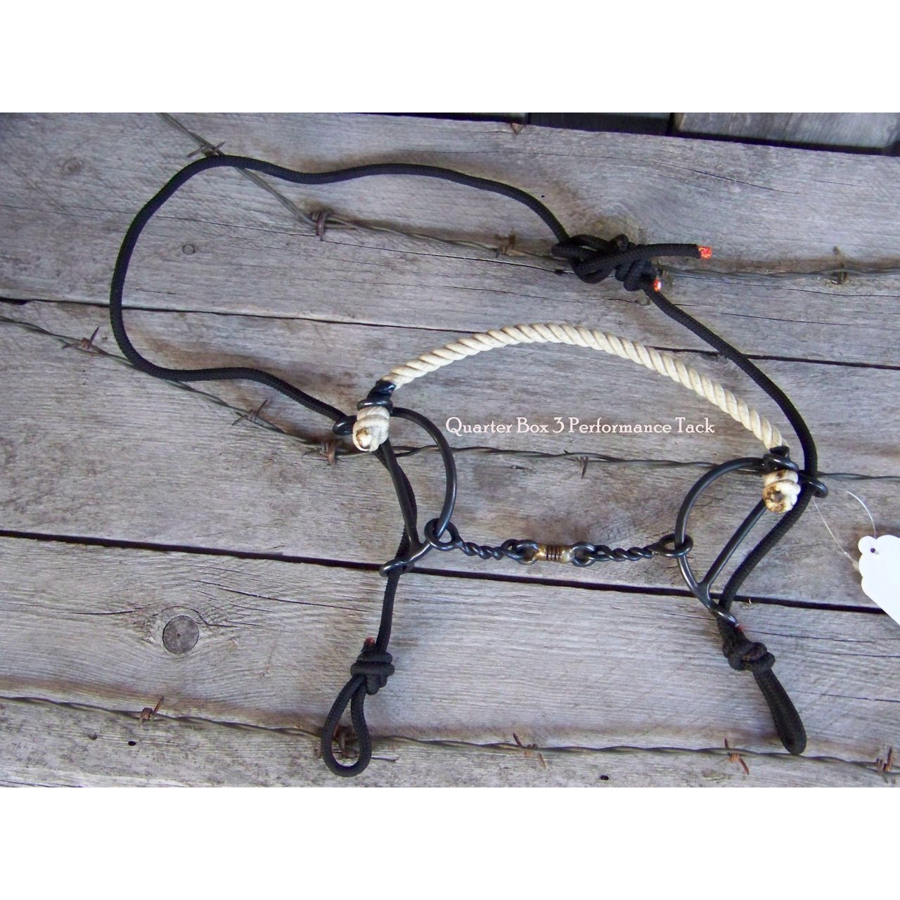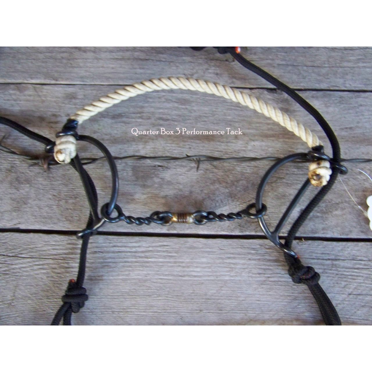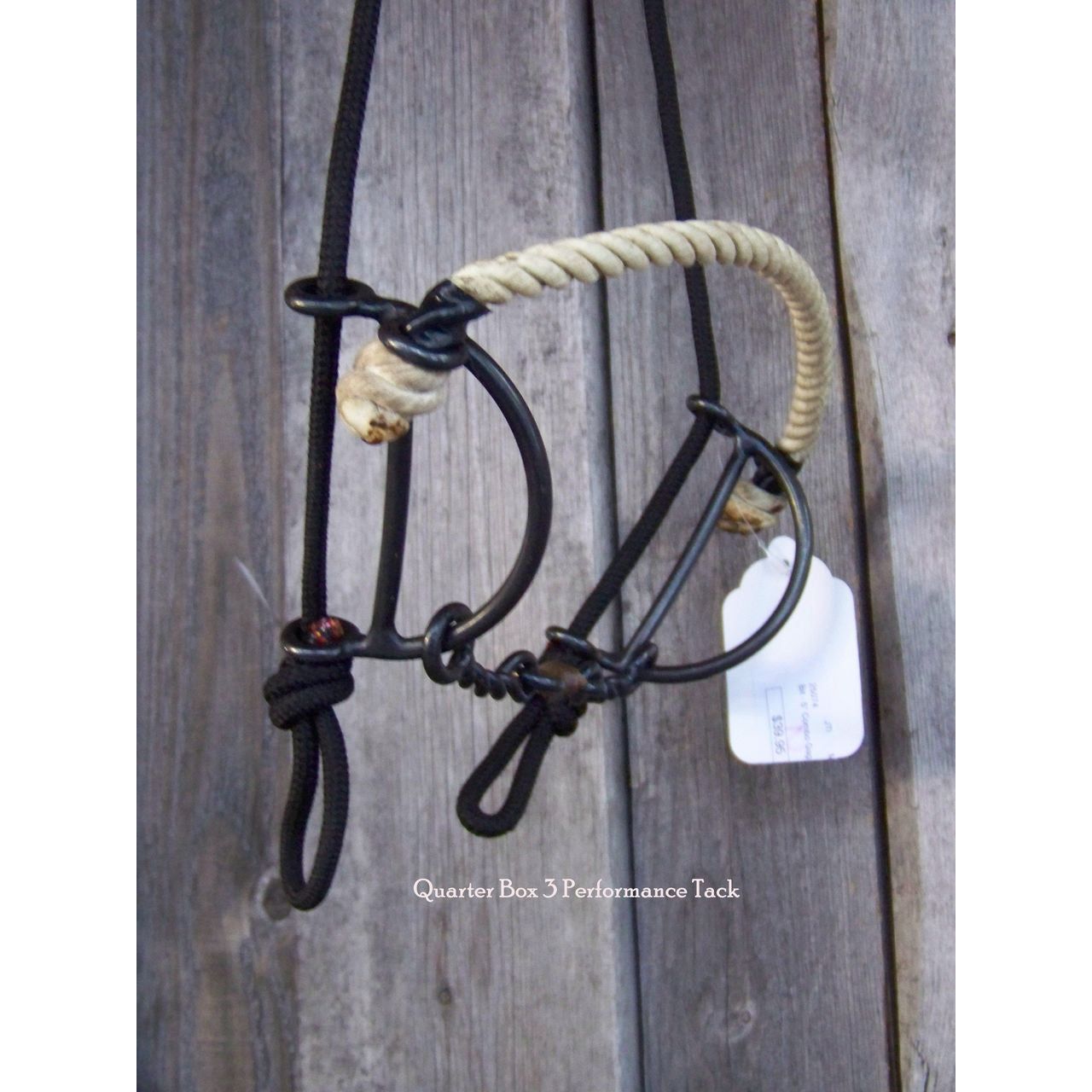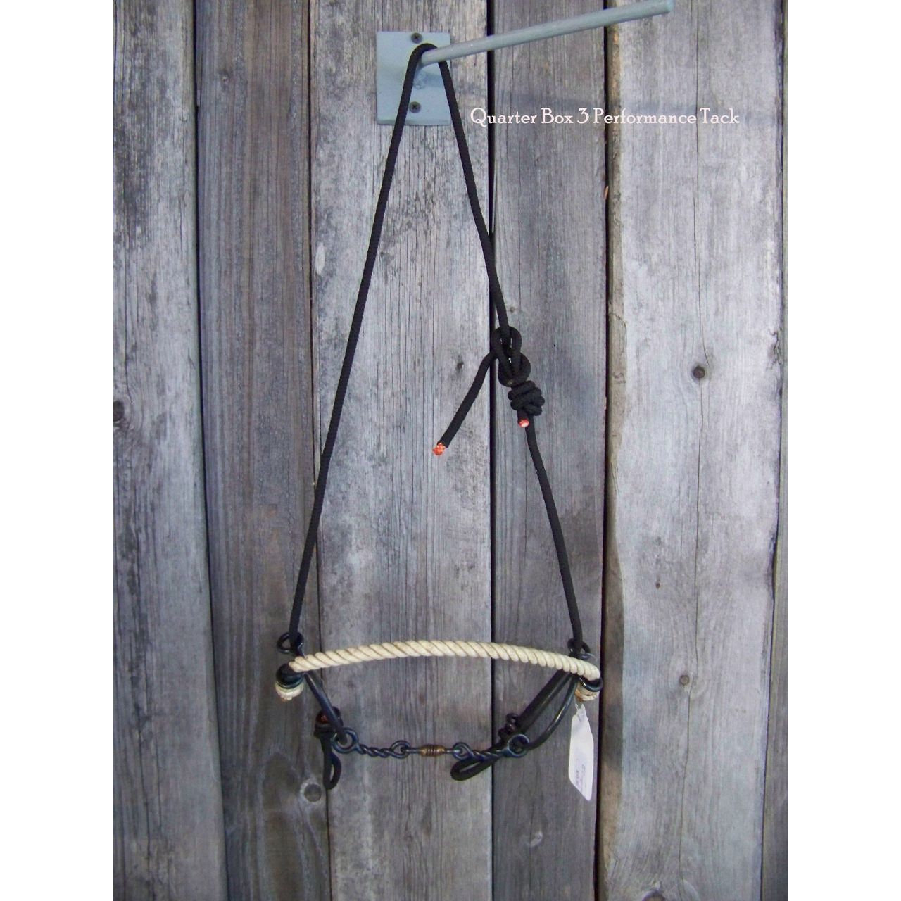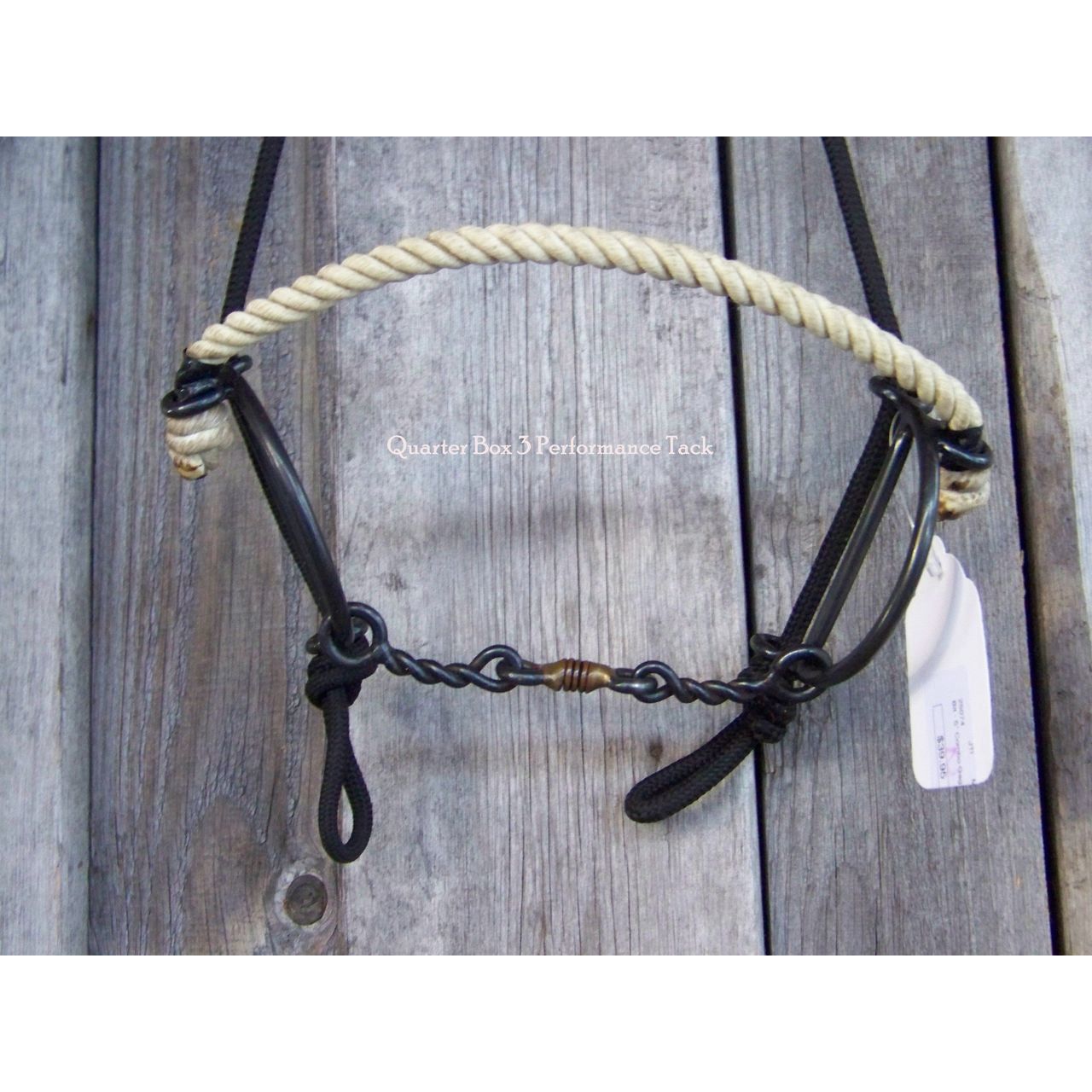 Rope Headstall with Rope Nose/Twisted Dogbone Gag Combo - Great bit for speed events! The gag action allows the bit to slide freely on the rope headstall without putting pressure on the bars of the mouth. This bit really helps to elevate a horse in the turn. Fully adjustable using a rope halter- style knot.