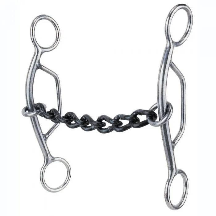 A low leverage gag excellent for horses with a lot of natural rate, the chain is one of the less severe mouthpieces. Works well on the corners of the lips and conforms well in the mouth for a slight amount of tongue pressure. Most problem horses will pack this mouthpiece very well.
