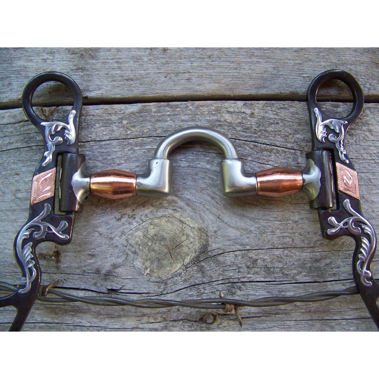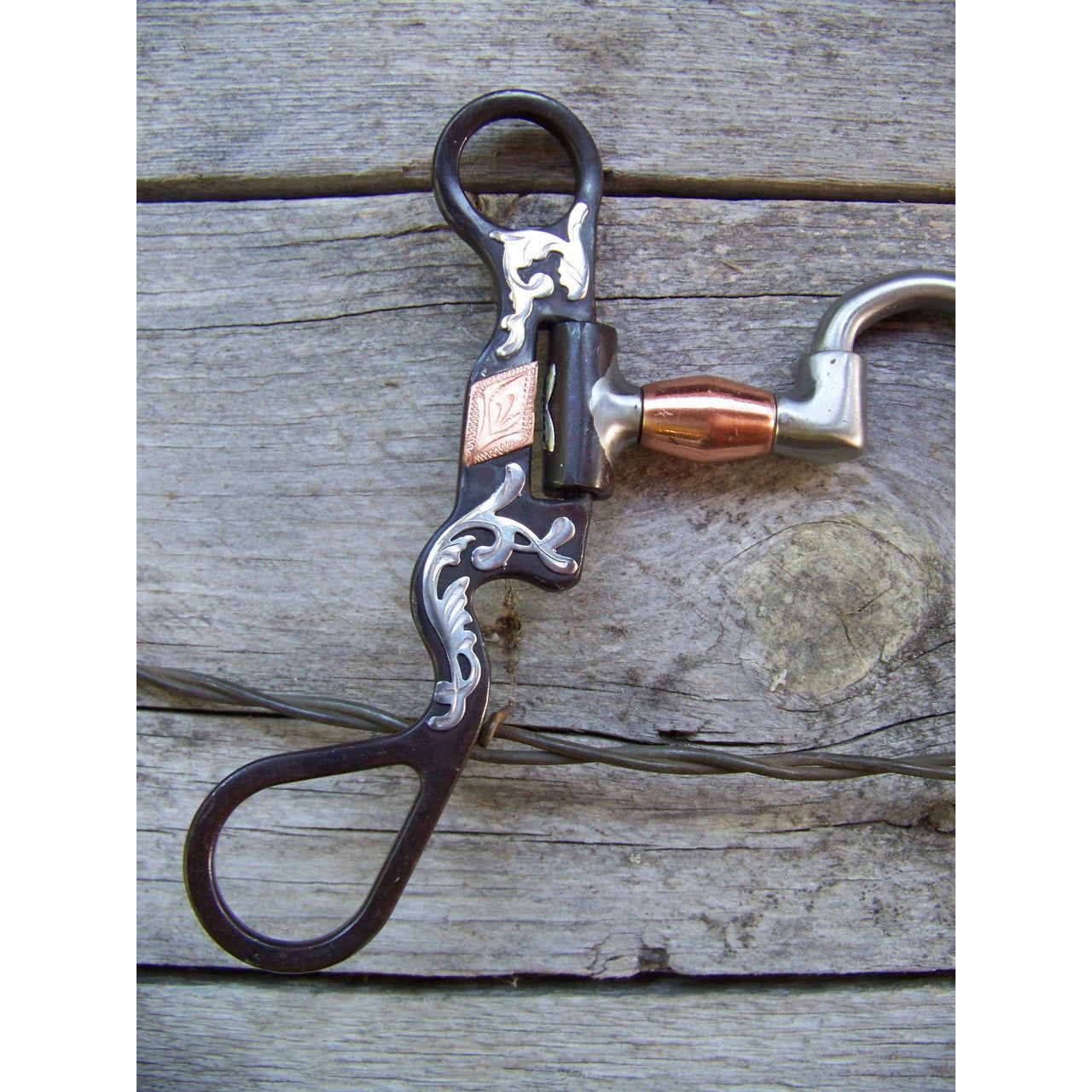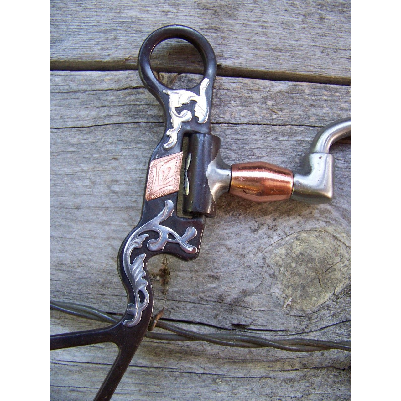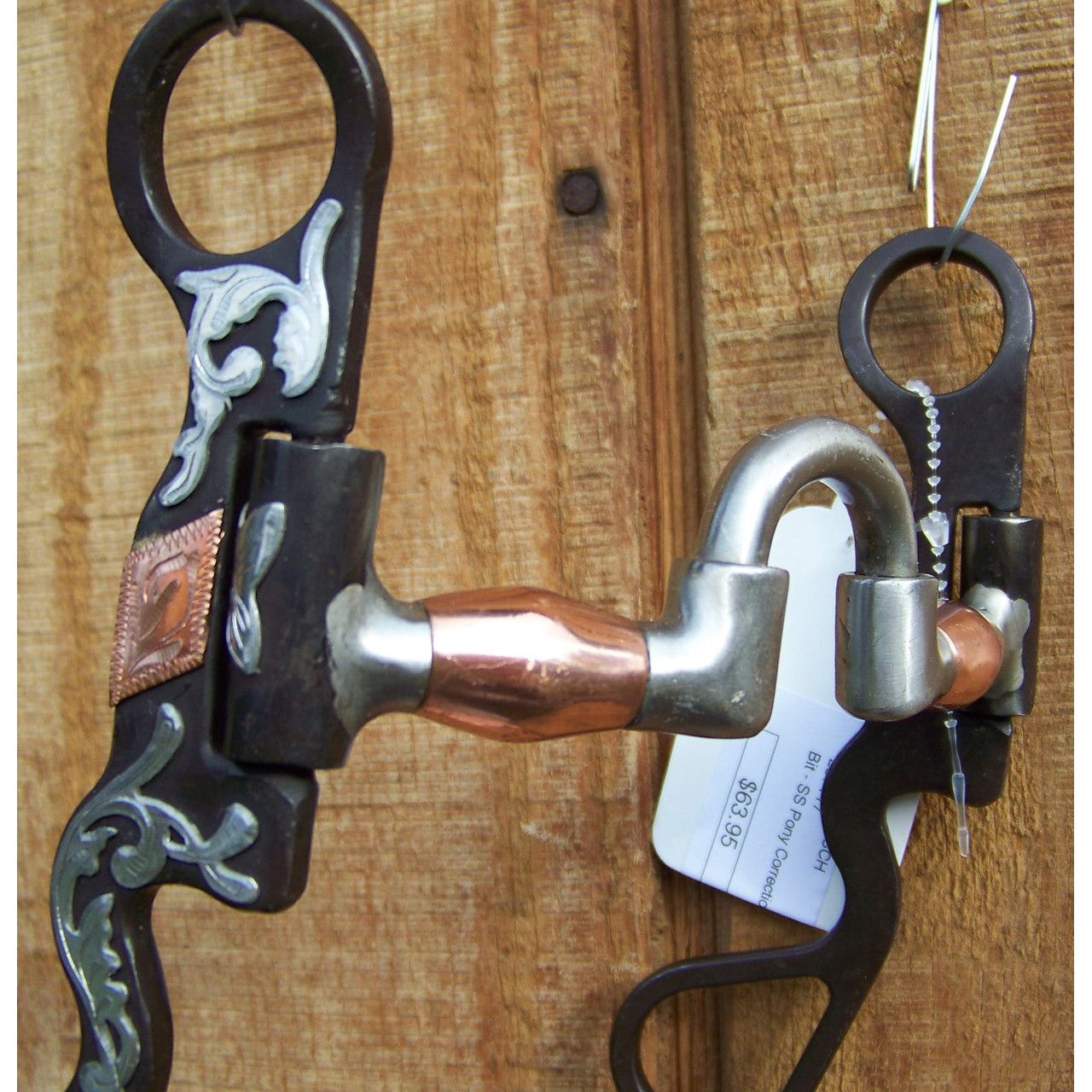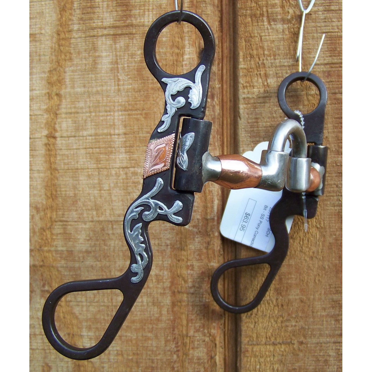 Santa Fe Collectin - Pony Correction Bit. 4 1/2" correction mouthpiece with copper barrels. 1 1/2" port. 6" cheeks with floral trims and copper.