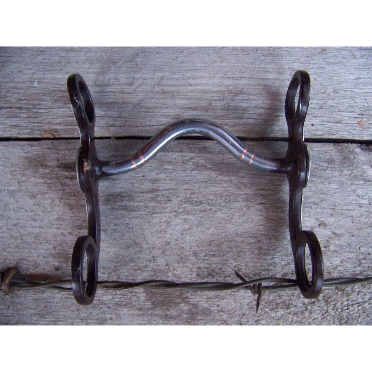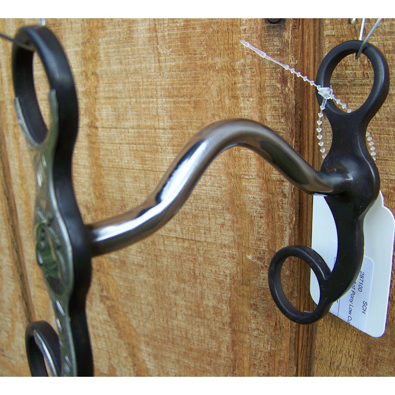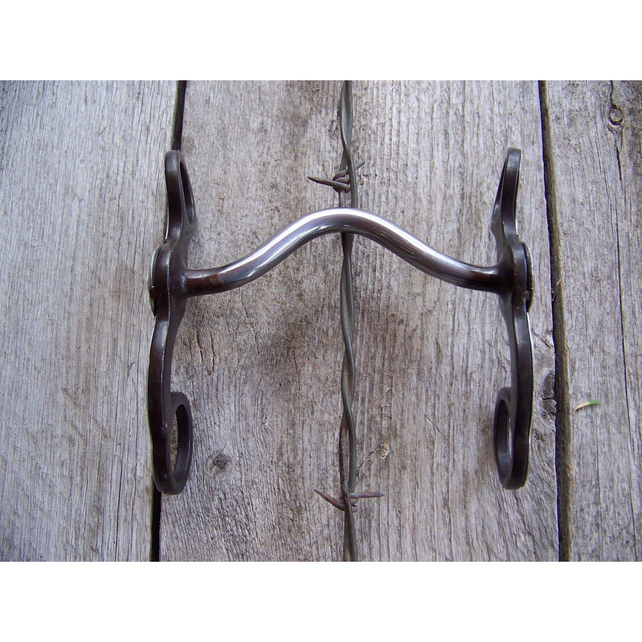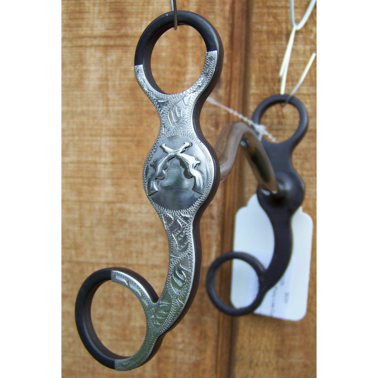Santa Fe Collectin - Pony Bit with Pistols. 4 1/8" sweet iron low port curved mouthpiece. 4 1/2" cheek with stainless steel hand engraved trim and pistol motif.