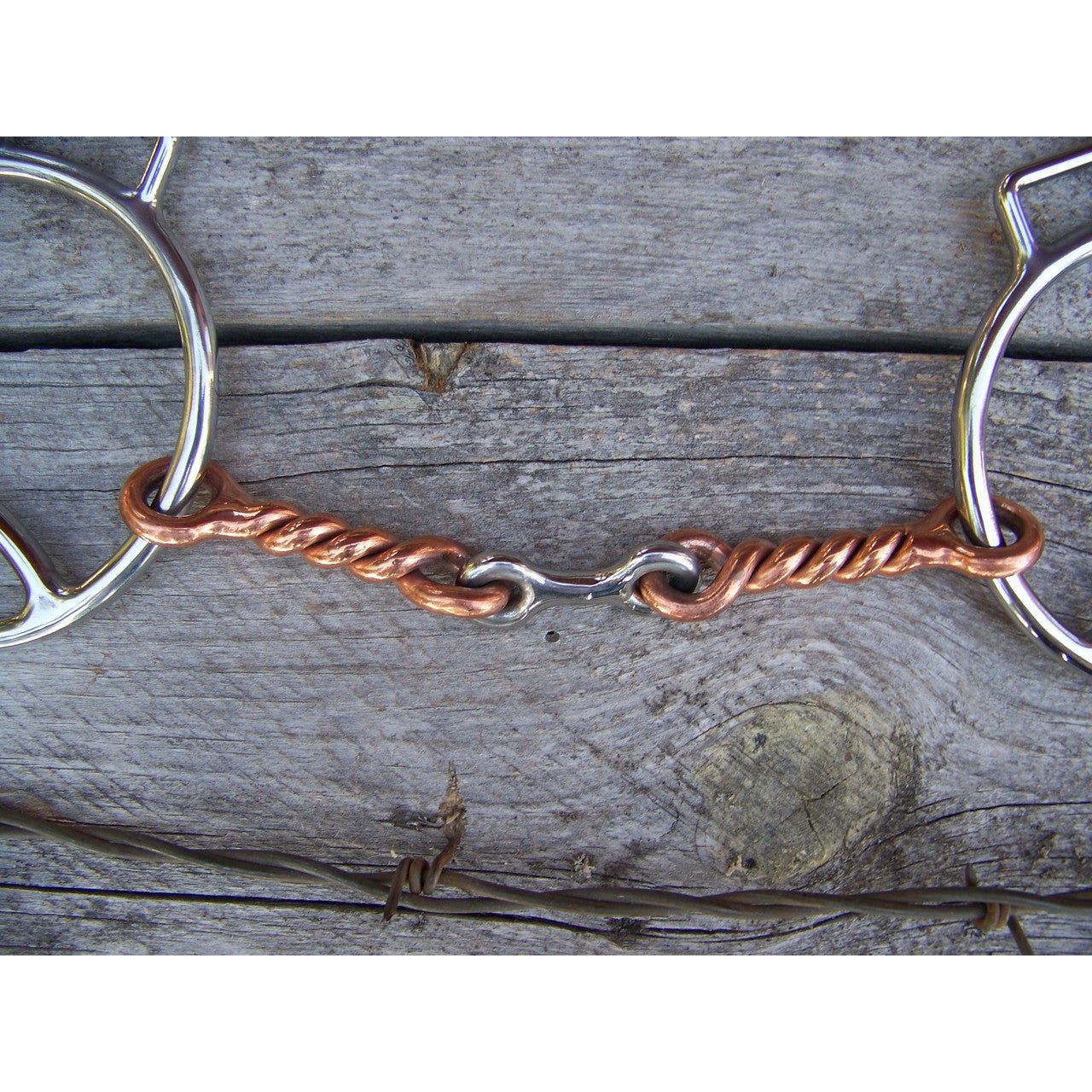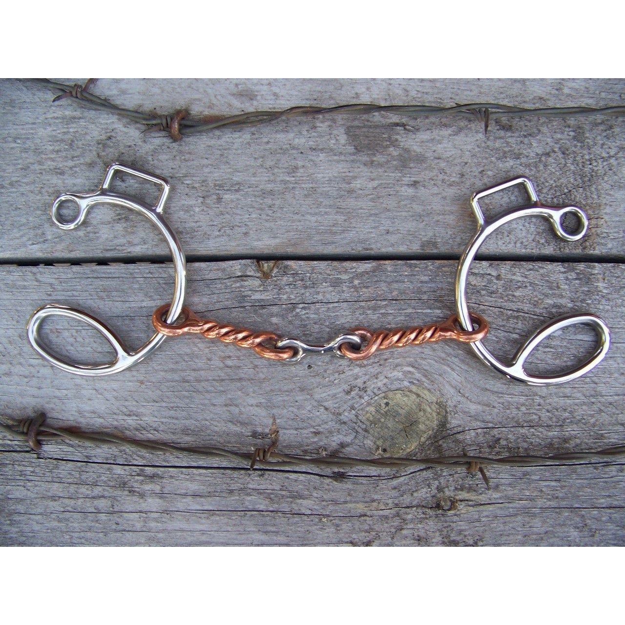 Stainless Steel Quick Six Bit 5-1/4" Dog Bone Mouth W/Copper Twisted Wire Bars and Stainless Steel Dog Bone 4-1/8" Cheeks