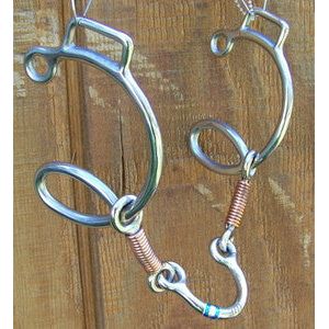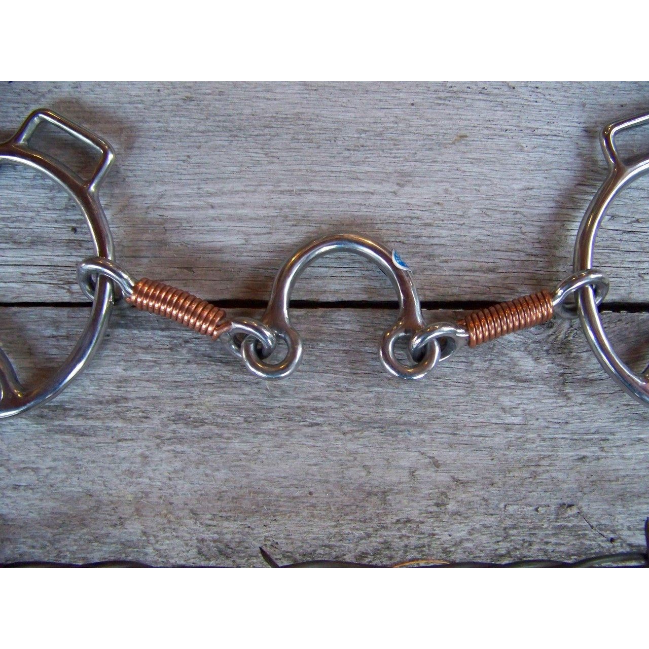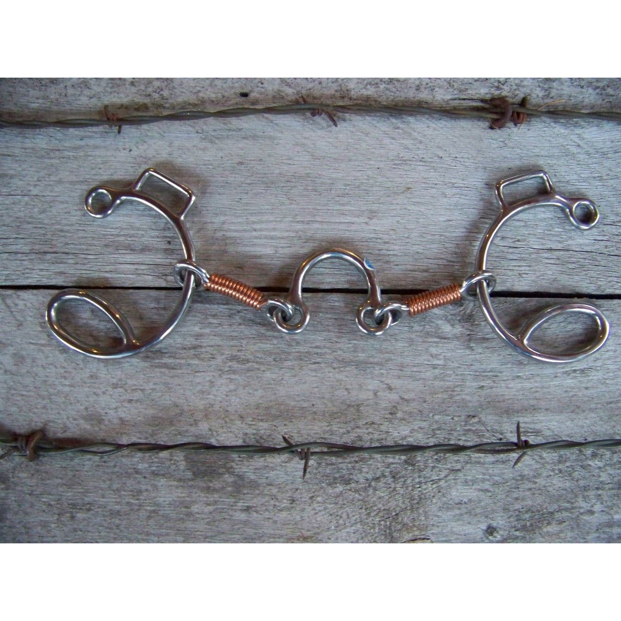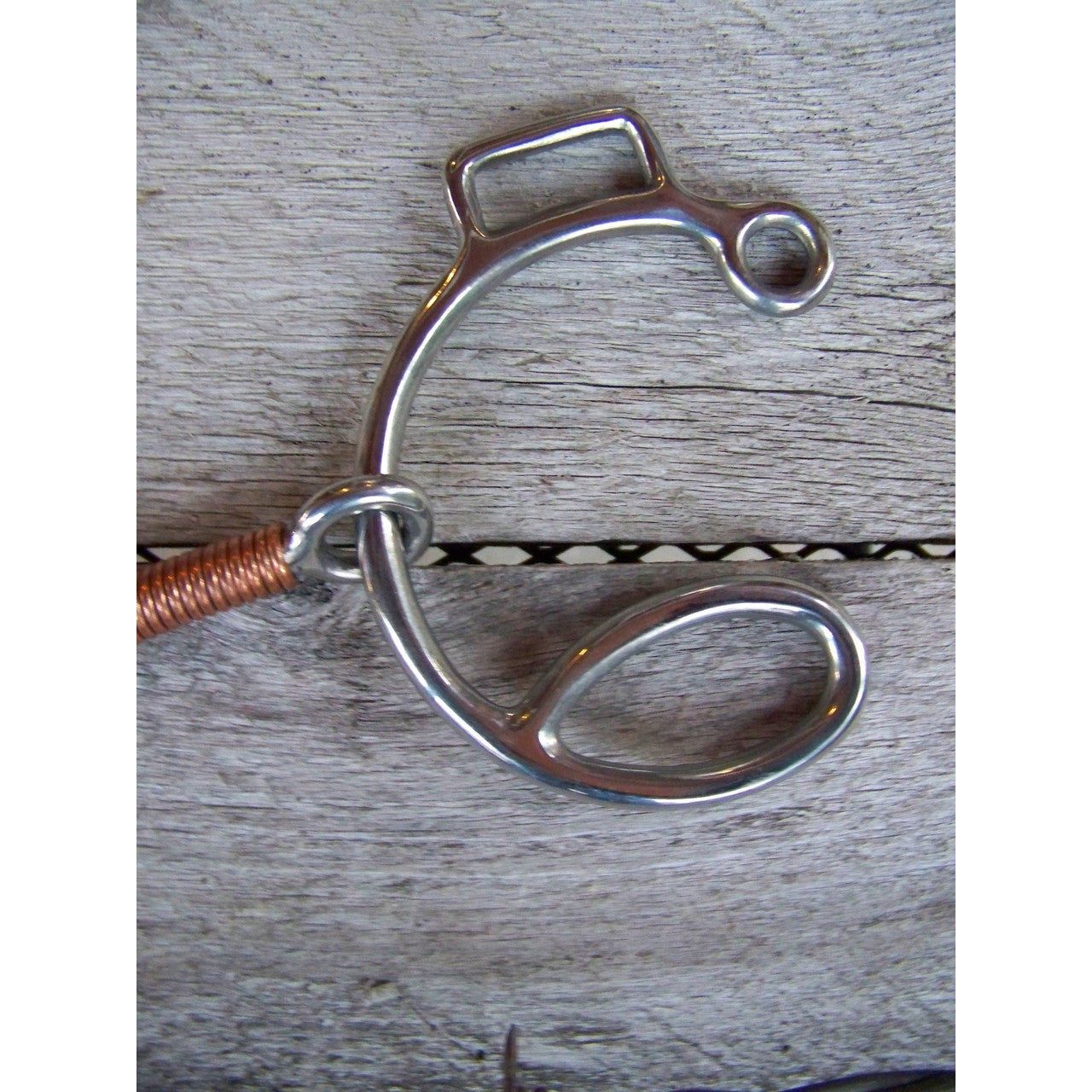 Sliding Six Bit with copper wire wrap on cheeks correction mouth. Mouth measures 5 1/4" wide and cheeks are 3" stainless steel.