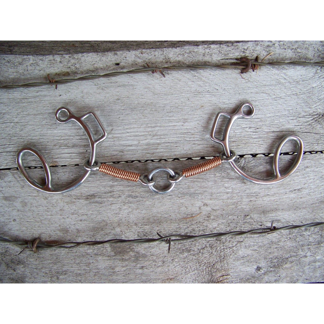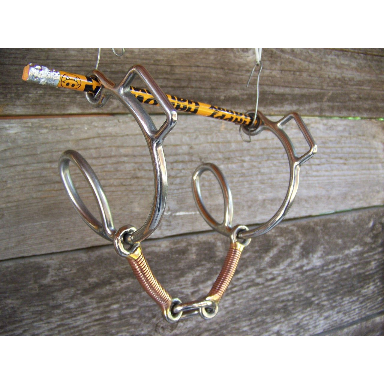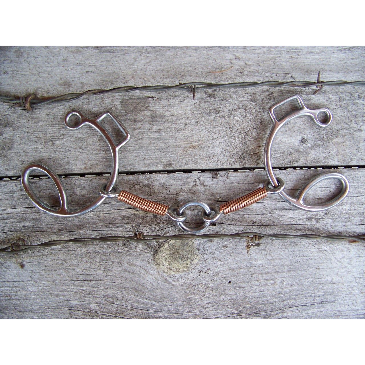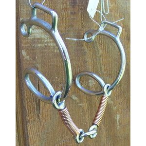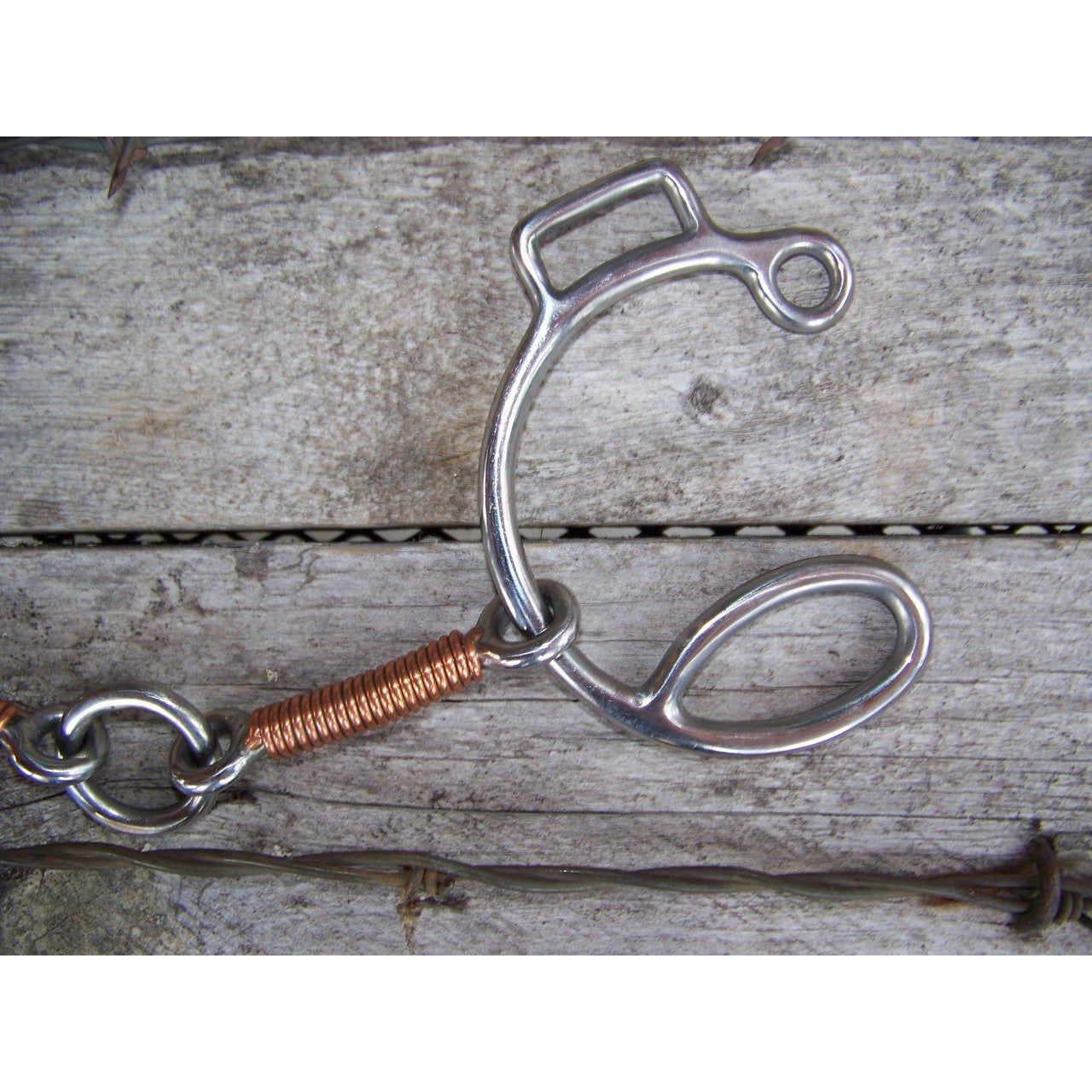Sliding Six Bit with copper wire wrap on cheeks and o-ring center. Mouth measures 5 1/4" wide and cheeks are 3" stainless steel.