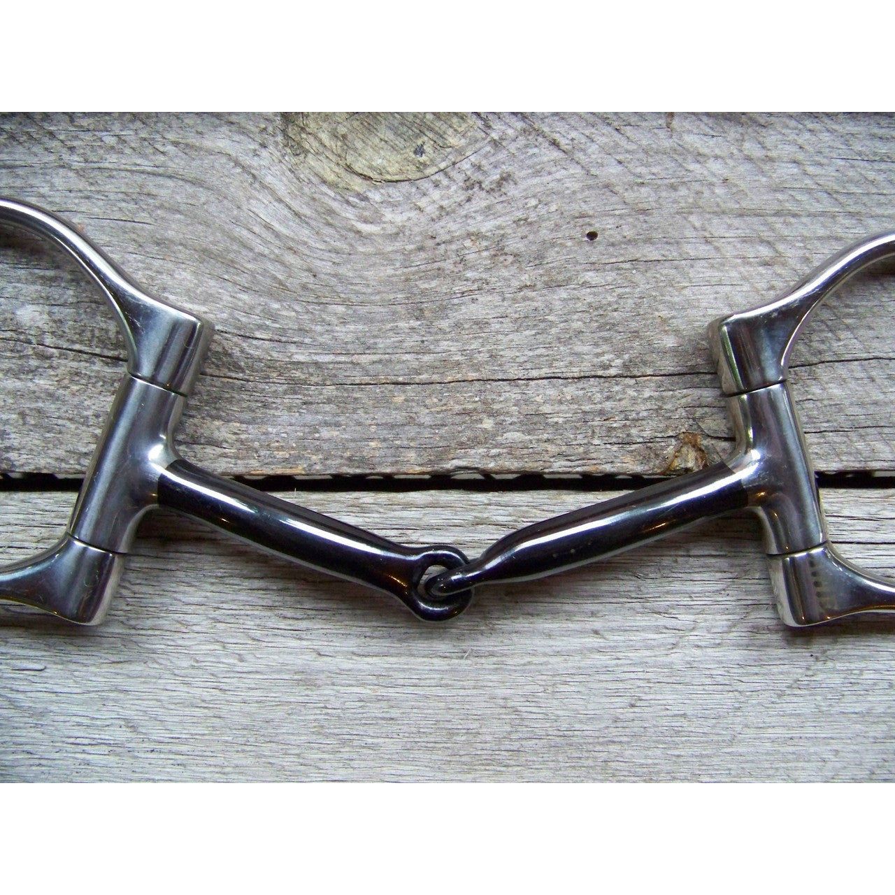 Stainless steel dee bit with 5" sweet iron snaffle with copper inlay. 3" diameter rings.