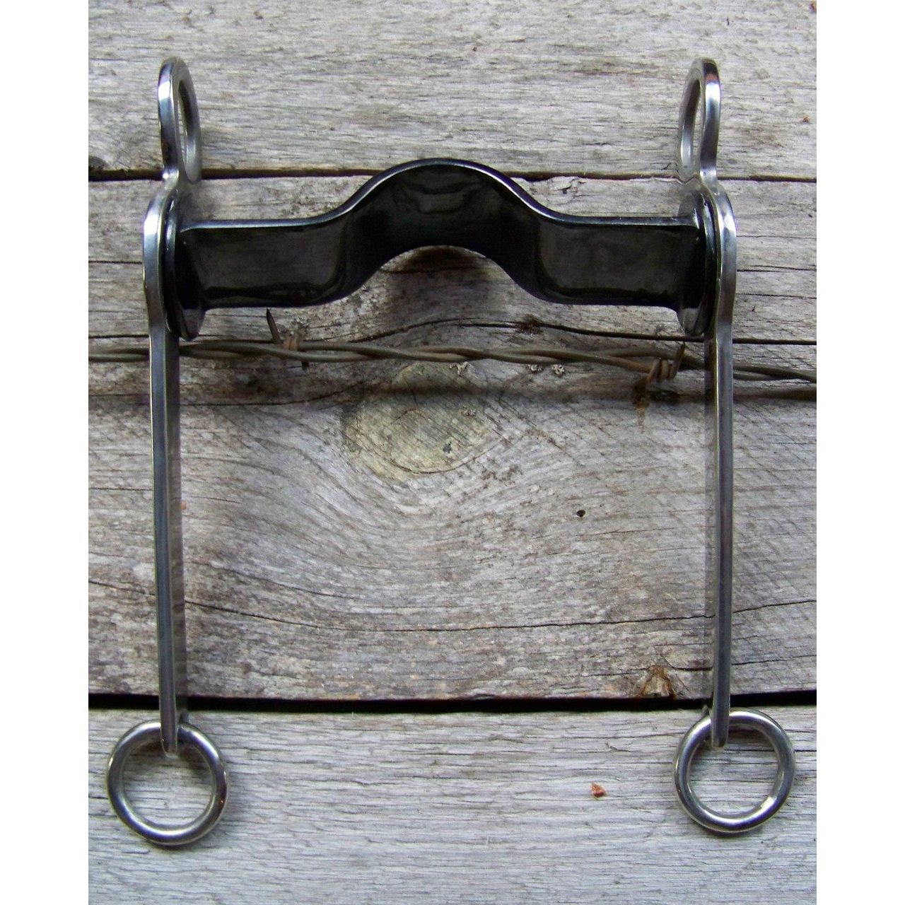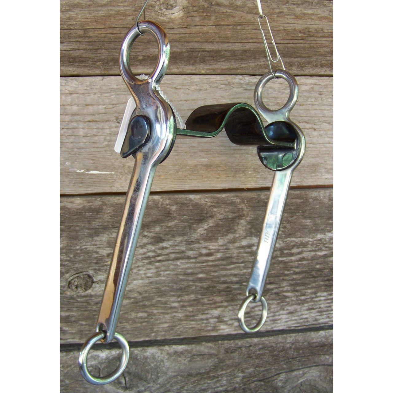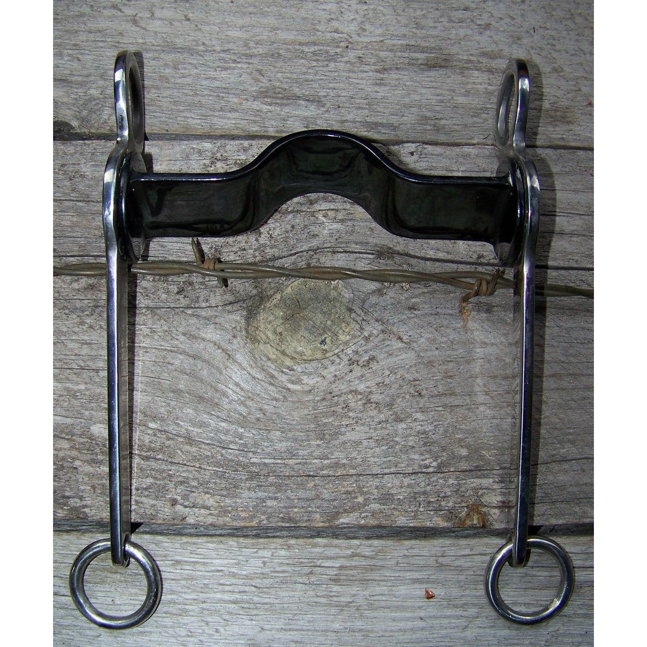 Stainless steel roping bit with a flat low port mouth piece which measure 5". Made of sweet iron.