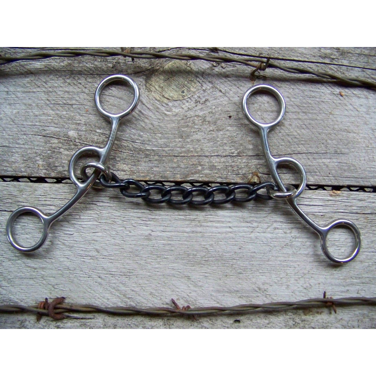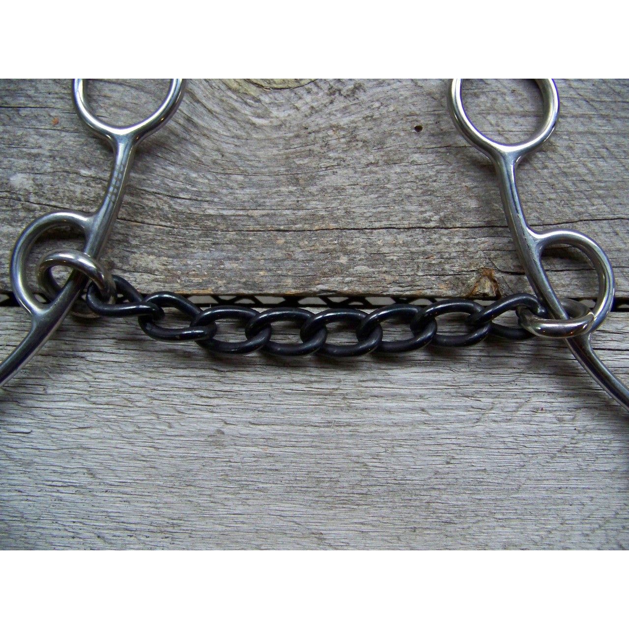 Stainless steel gag bit with 6" cheek, 5" sweet iron twisted chain mouth.