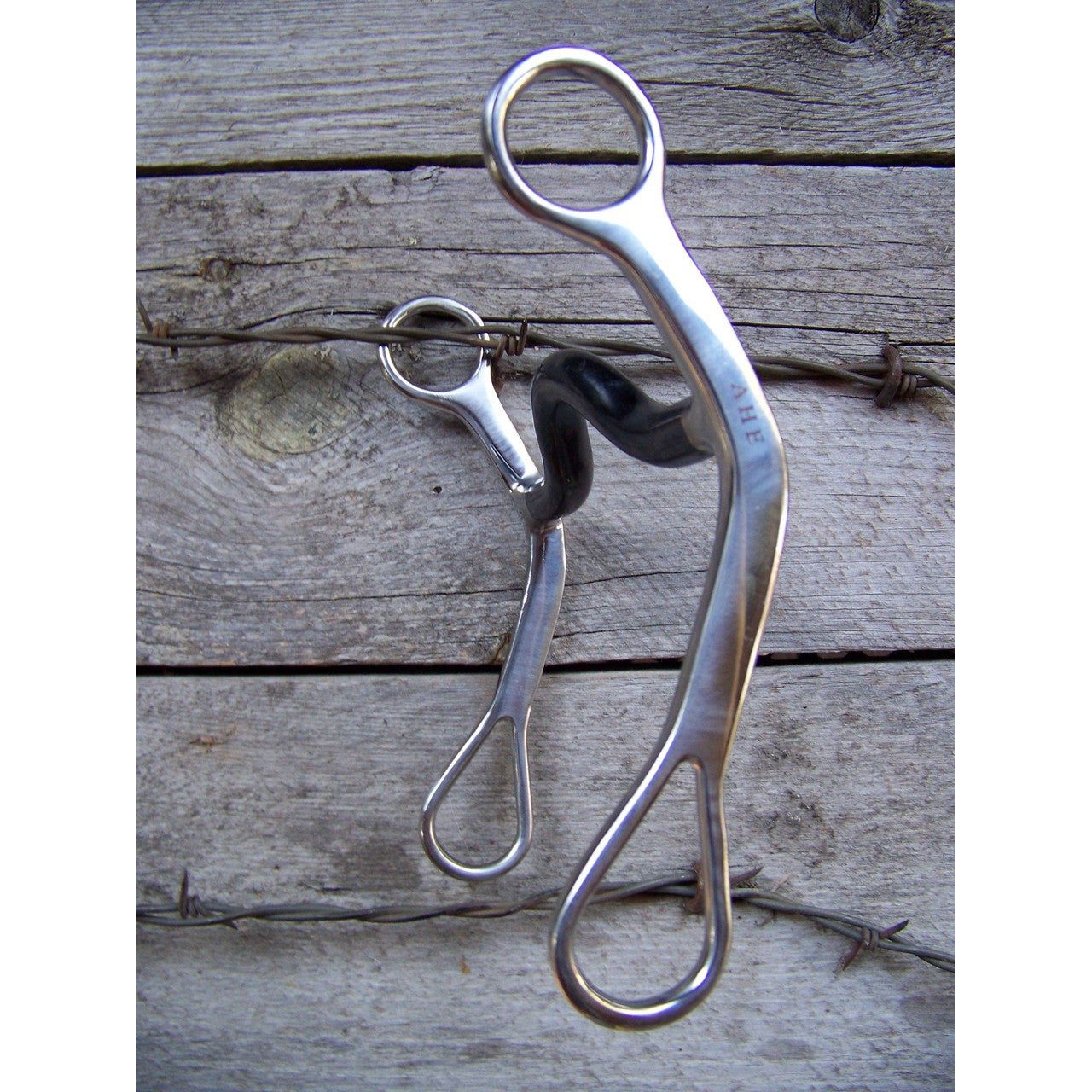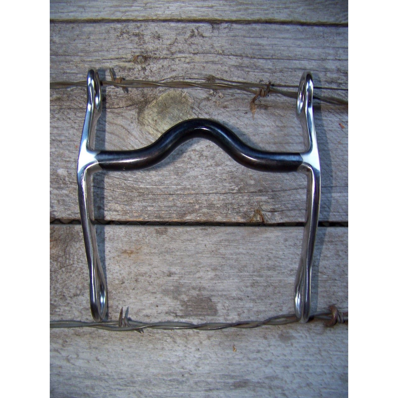 Stainless steel grazing bit with 5" sweet iron medium port mouth. 6 1/4" "C" shank cheeks.