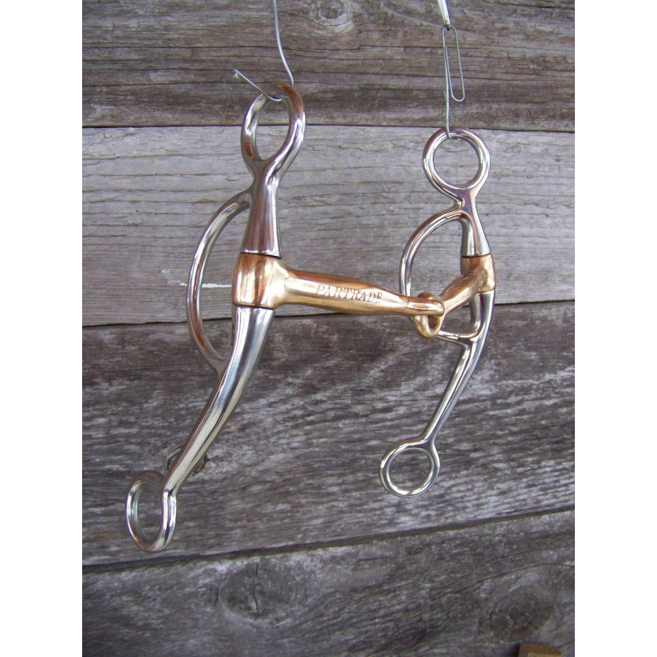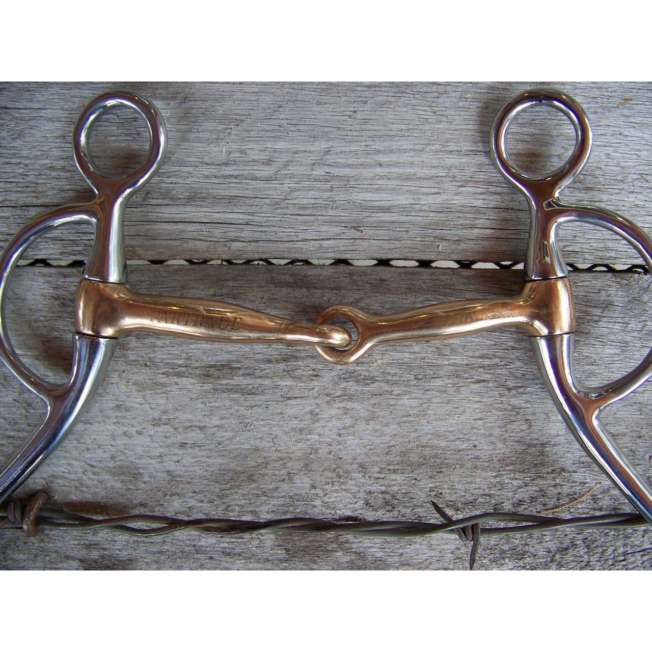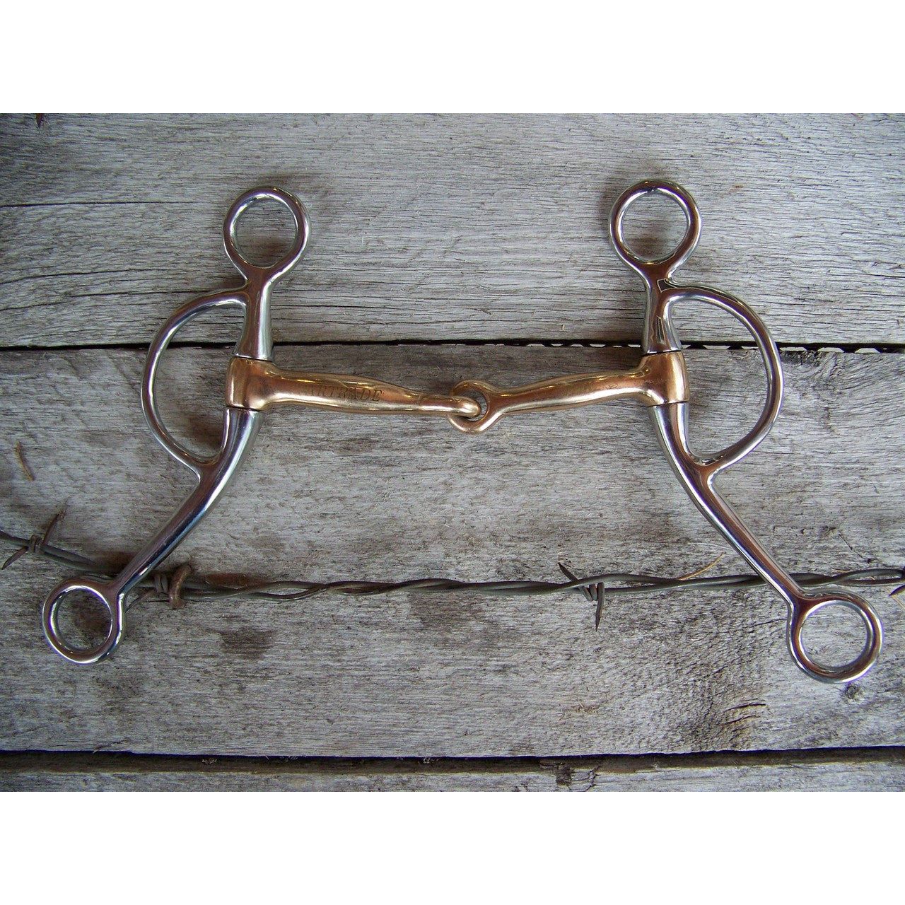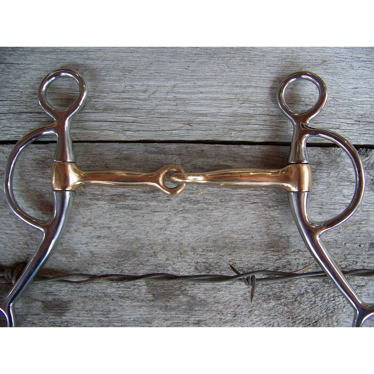 Stainless steel light weight training bit with a copper mouth. 7" cheeks. Great bit for the young to intermediate horse. Provides a moderate effect.