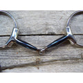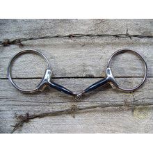 Stainless steel ring bit with 5" blued steel snaffle mouth. Extra long tubes on the sides to protect the mouth from pinching. 3" diameter rings.