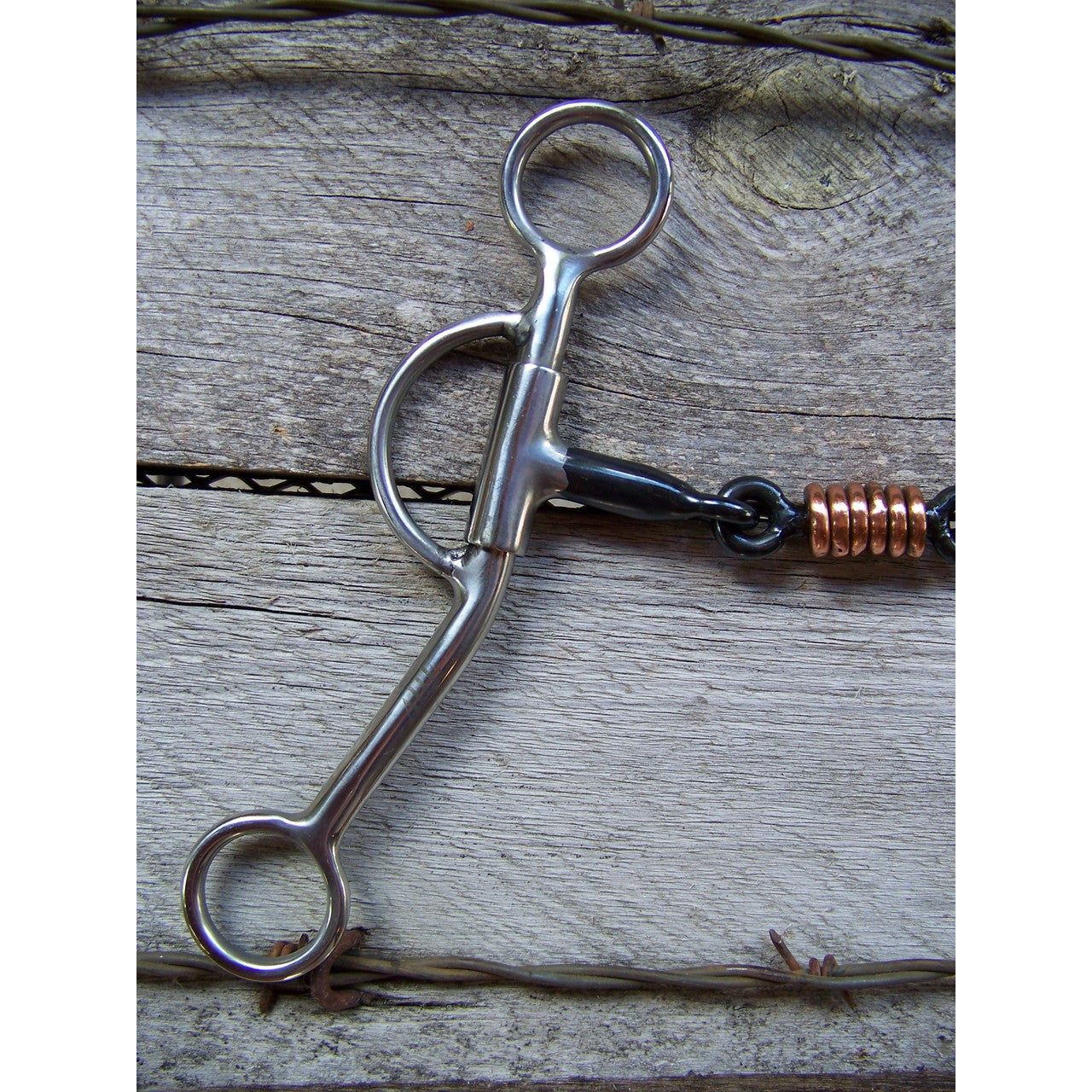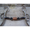Stainless steel training bit, 5" 3-Piece sweet iron mouth with copper rollers and 6 1/2" cheeks.