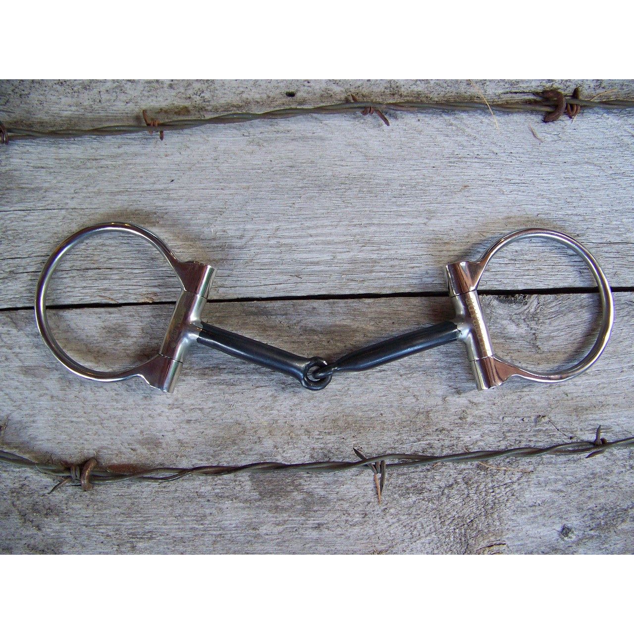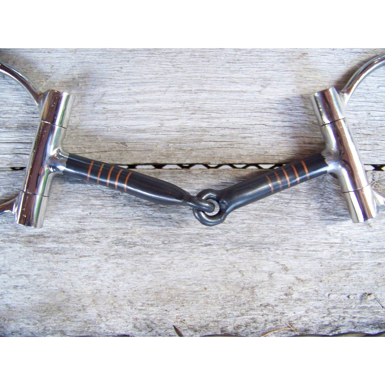 Stainless steel western dee bit with 5" sweet iron jointed mouth with copper inlay. For young intermediate horse. Provides a moderate effect.