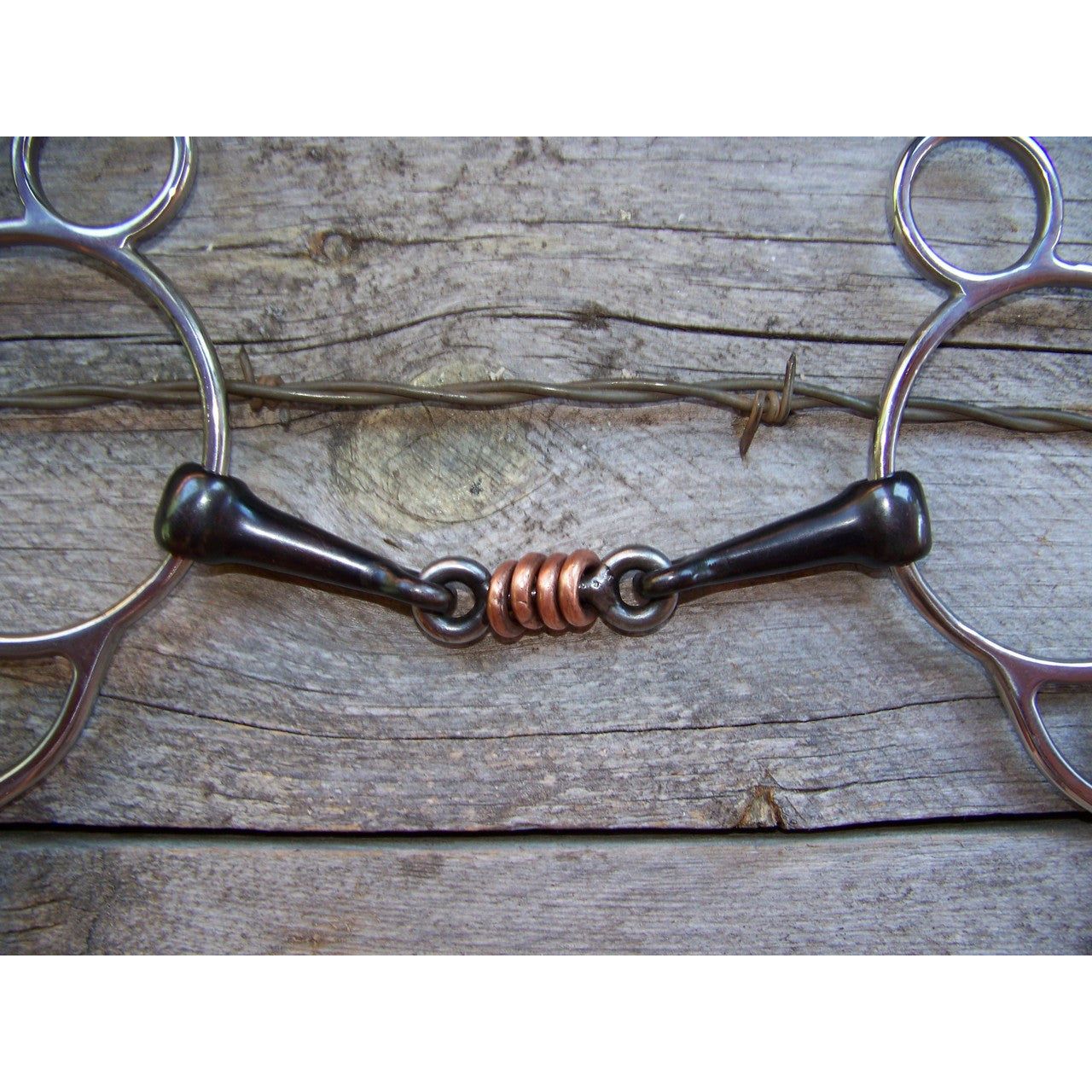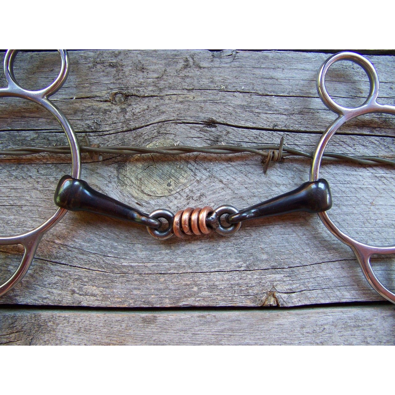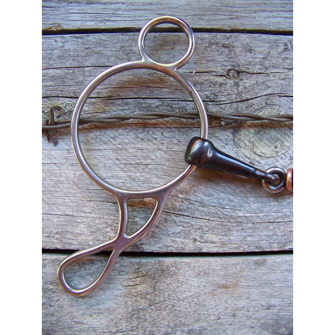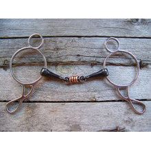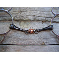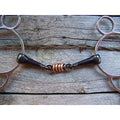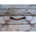 Stainless steel wonder gag bit with dog bone mouth and copper rollers.