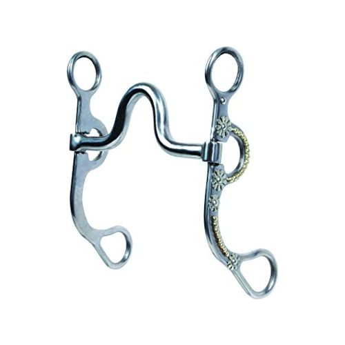 This is a very useful bit with this little shank that offers just enough leverage to connect with your horse but not intimidate him. The correction mouthpiece here is among our most popular as it offers a great deal of lateral movement and control. Beautiful daisy design on the shank completes this bit. 6" shank, 5" mouthpiece, 2" port.