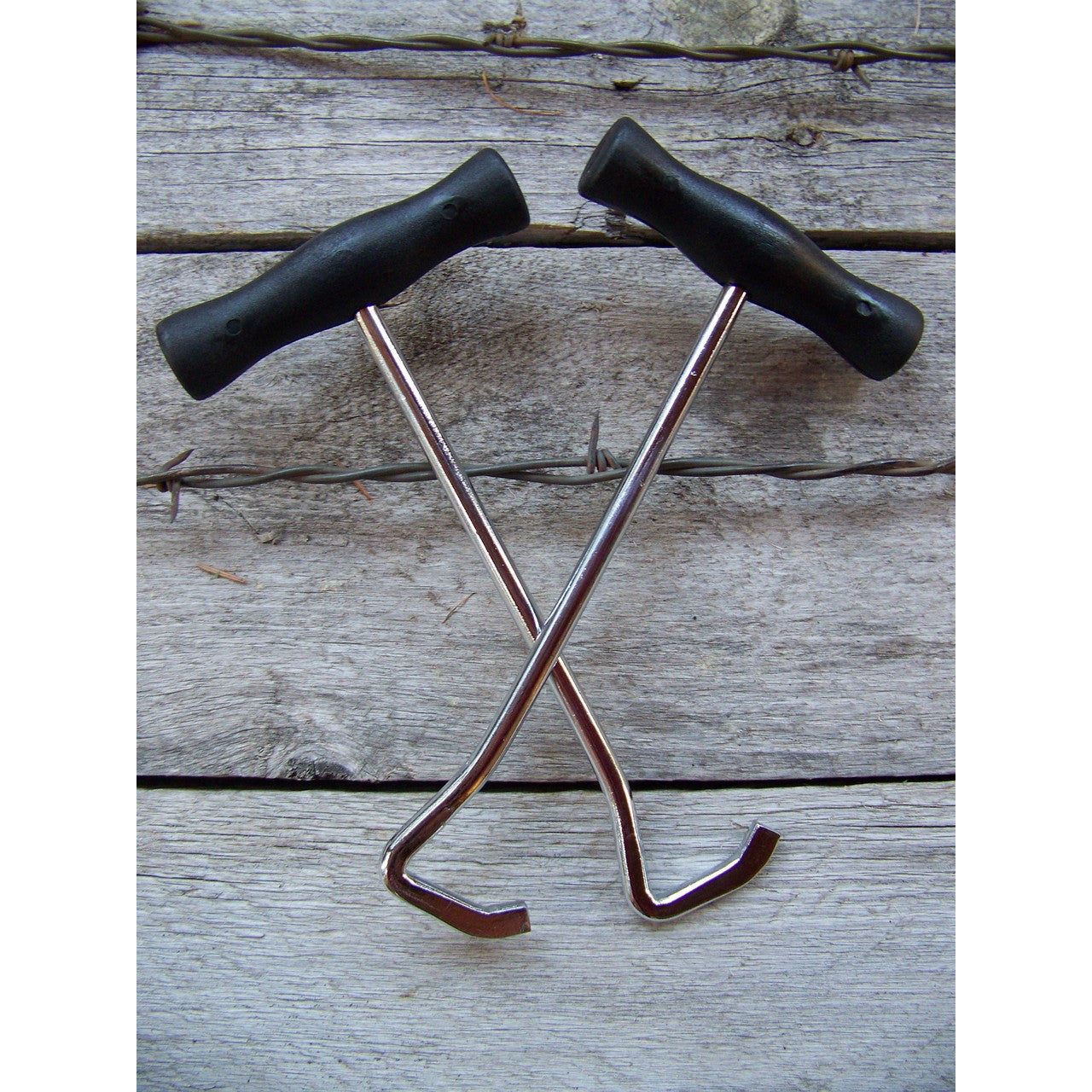 Pair of boot hook pulls with plastic handles. Great for putting on your English boots or the Western boots when the days are long and getting the ummppphhh to pull on the boots is difficult!