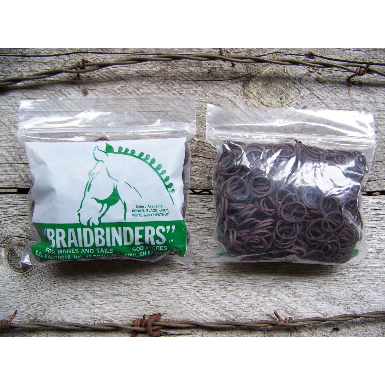Good quality braiding bands. Ideal for braids that are easy to remove at competitions or for plaiting manes over at home to train them onto one side of the neck. 600 bands per bag.