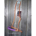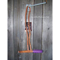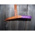 Premium harness leather caveson with polyester coated rubber nose for optimum, durable stretch. 1/2" wide headstrap with nickel buckle. Colors in Orange, Black, Purple, and Green. Each color listed separately. This is for the purple.