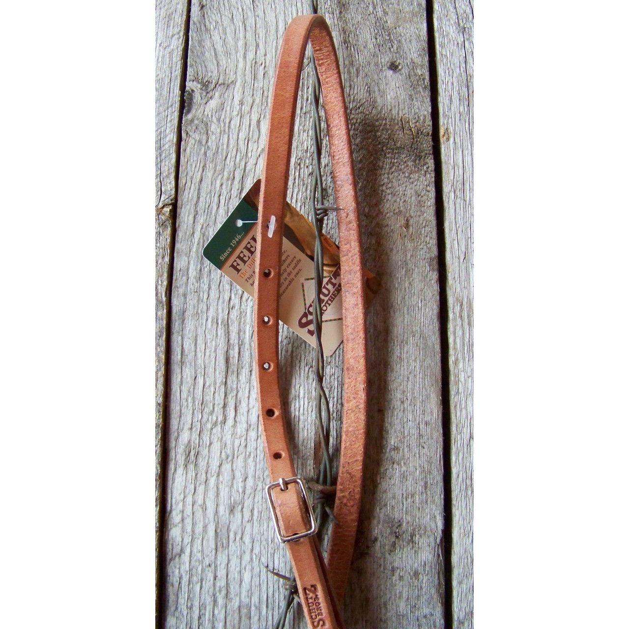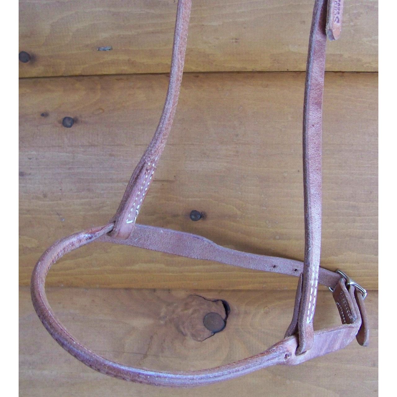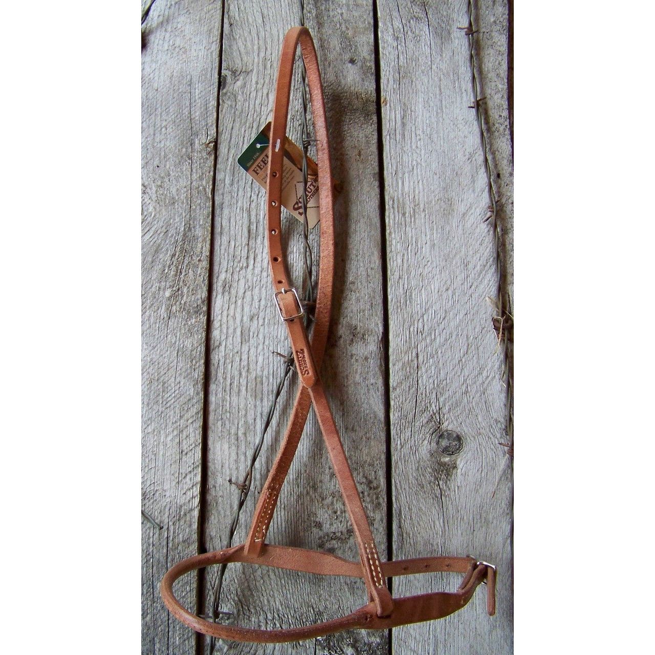 Harness leather caveson by Schutz Brothers has a half rounded noseband and is adjustable at the chin and on the side for a proper fit. Cheek pieces permanently attach to the noseband so you don't get any slippage that you can with other cavesons. Buy proud, made in the United States.