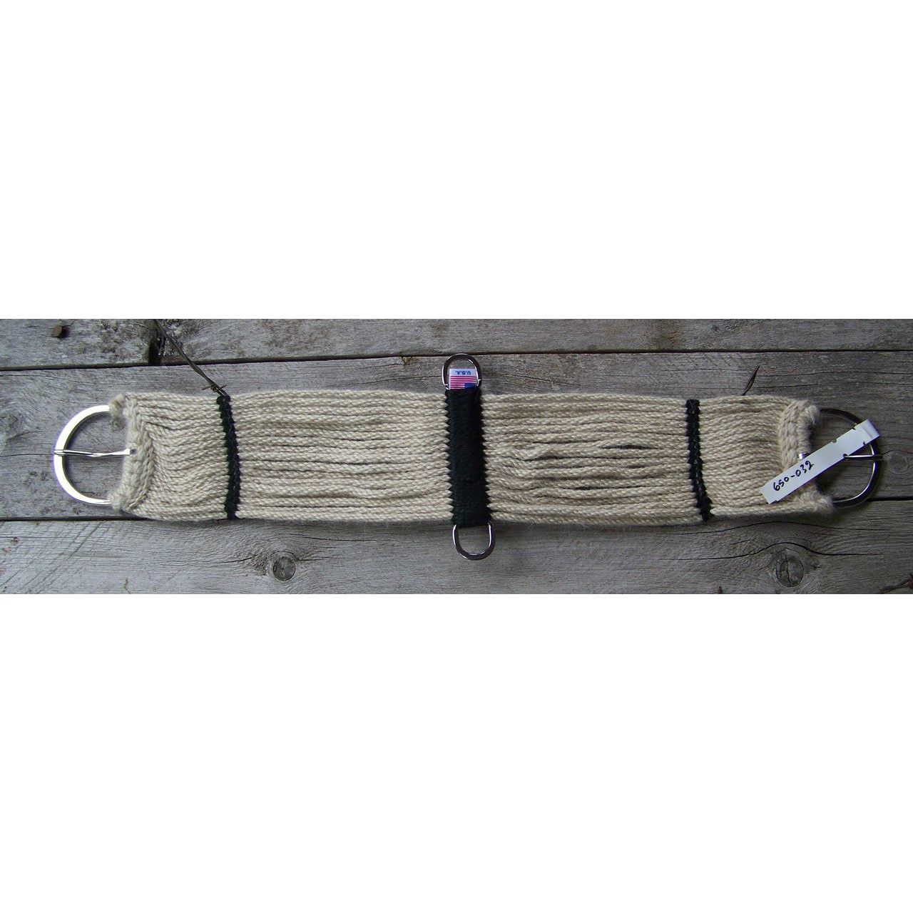 17 Strand Mohair Cinch - 2 cross bars, nylon sewn and wrapped center with stainless steel flat center dees.