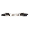 This strong nylon curb strap features nickel-plated double chain center with fully adjustable square buckle ends, 3 holes on each side. 1/2" wide, Adjusts 8 1/2" ? 9 1/2" to fit most minis. 2 3/4" double chain center.