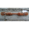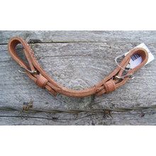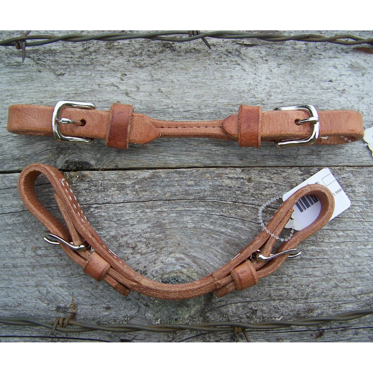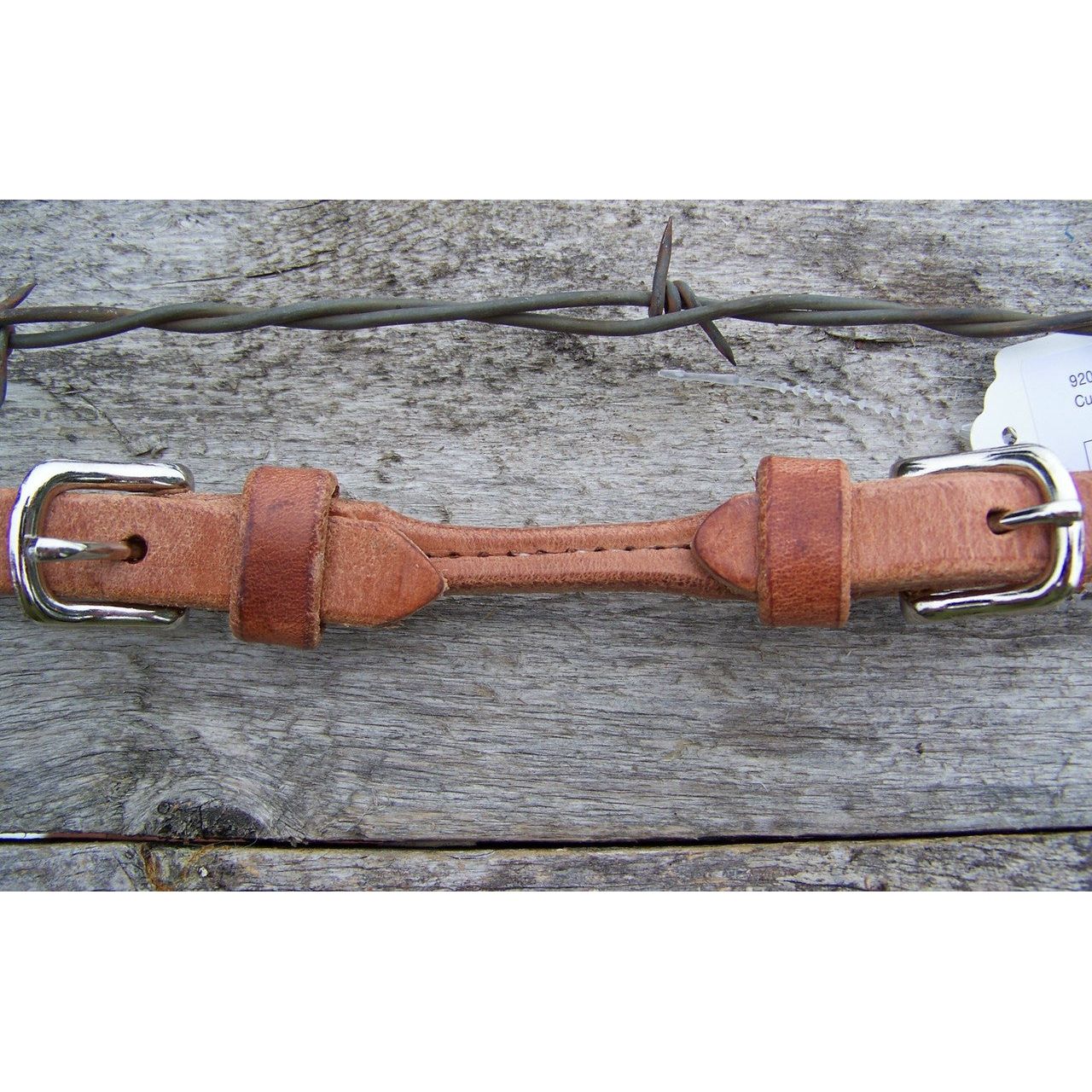 Double buckle leather curb straps have rounded center and leather loops. Made out of harness leather. Made in the USA by Schutz Brothers.