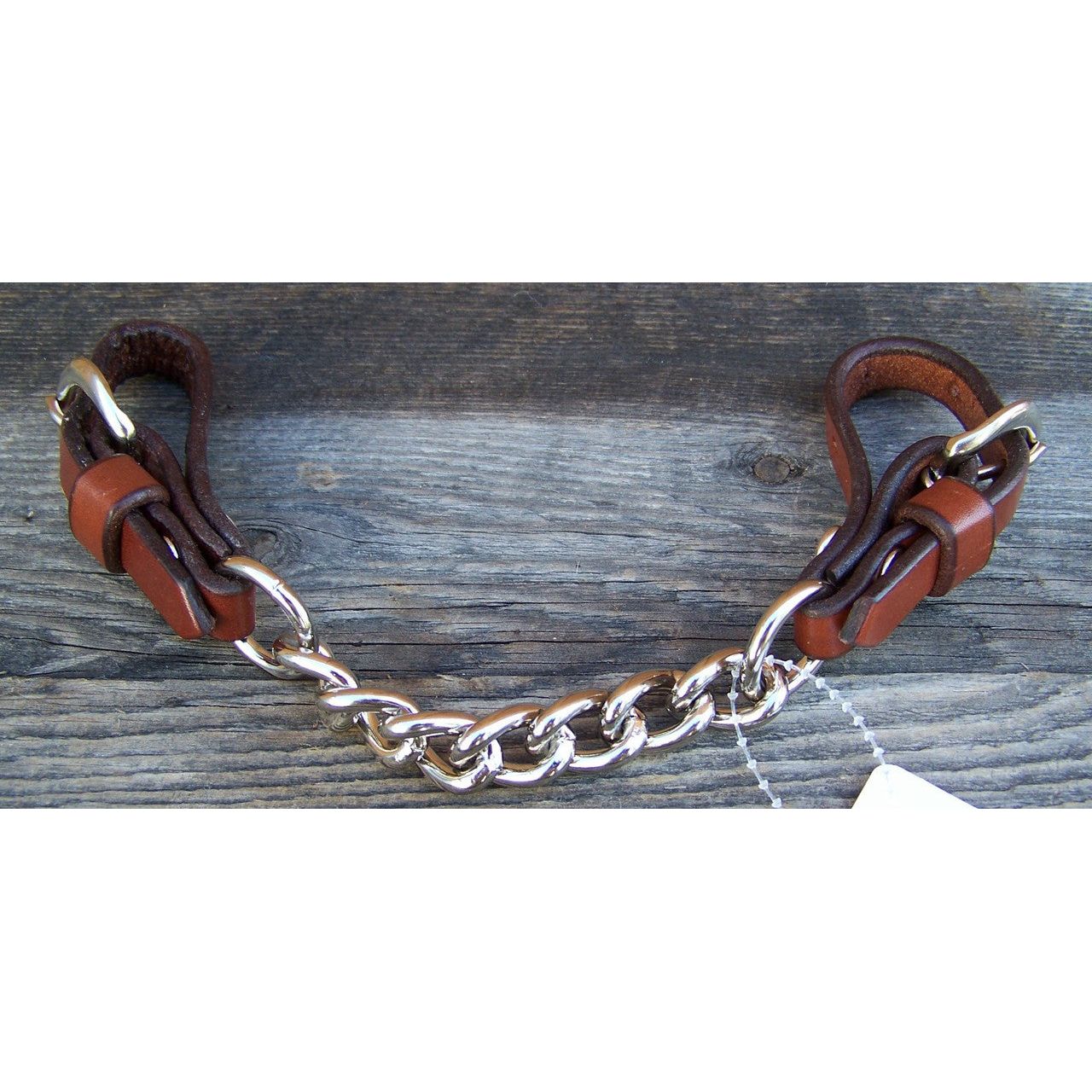 Single chain show curb. Nickle plated chain and removable buckles. Leather measures 1/2" wide.