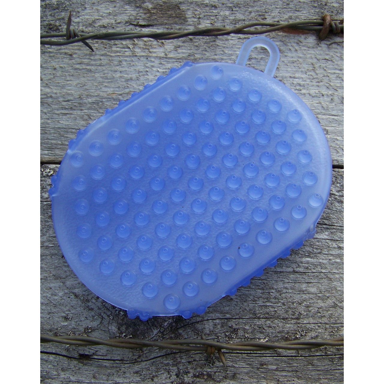 The Jelly Scrubber works great as a bathing mitt. The Jelly Scrubber is a soft, flexible curry that's great for short-haired dogs or thin-skinned horses. Large nubs on one side are great for washing out the deep down dirt while smaller nubs on the other can be used for even the most sensitive skin around the face.