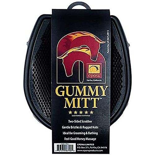 One side features short bristles to bring dust and dirt to the surface. The other side has deep nubs to polish coats and leave a gleaming finish as they deliver a soothing massage. Lucky horseshoe shape fits snugly in hand, wet or dry. Black.