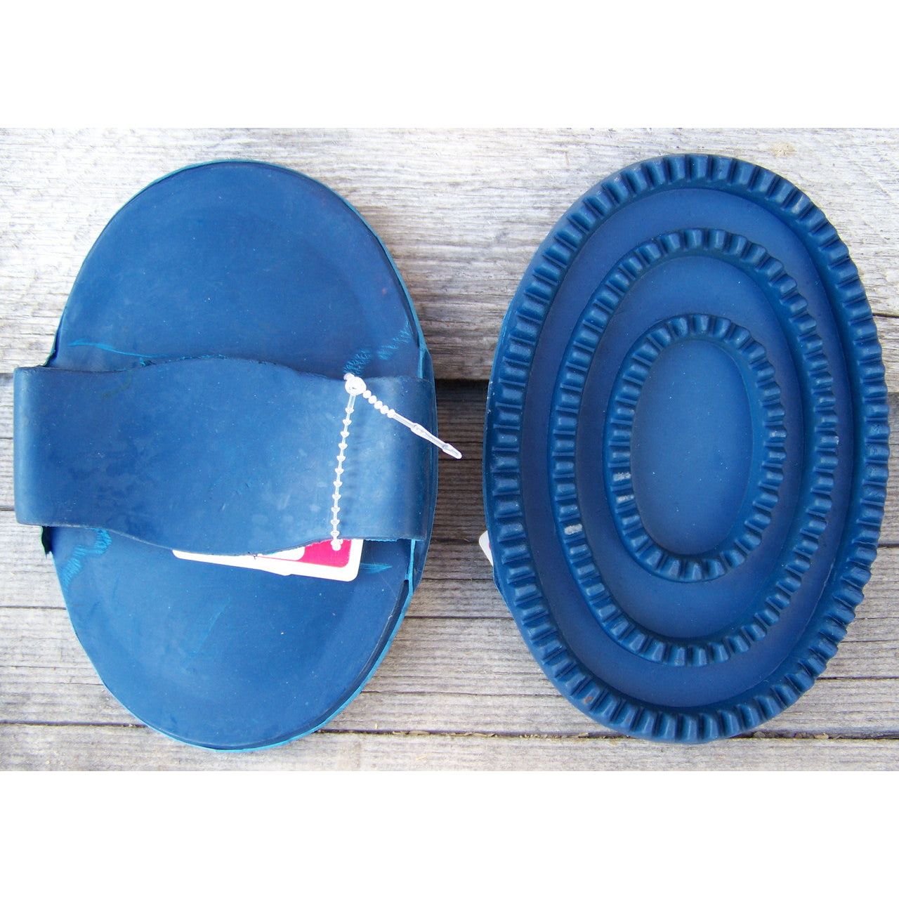 A flexible rubber curry with a rubber handle