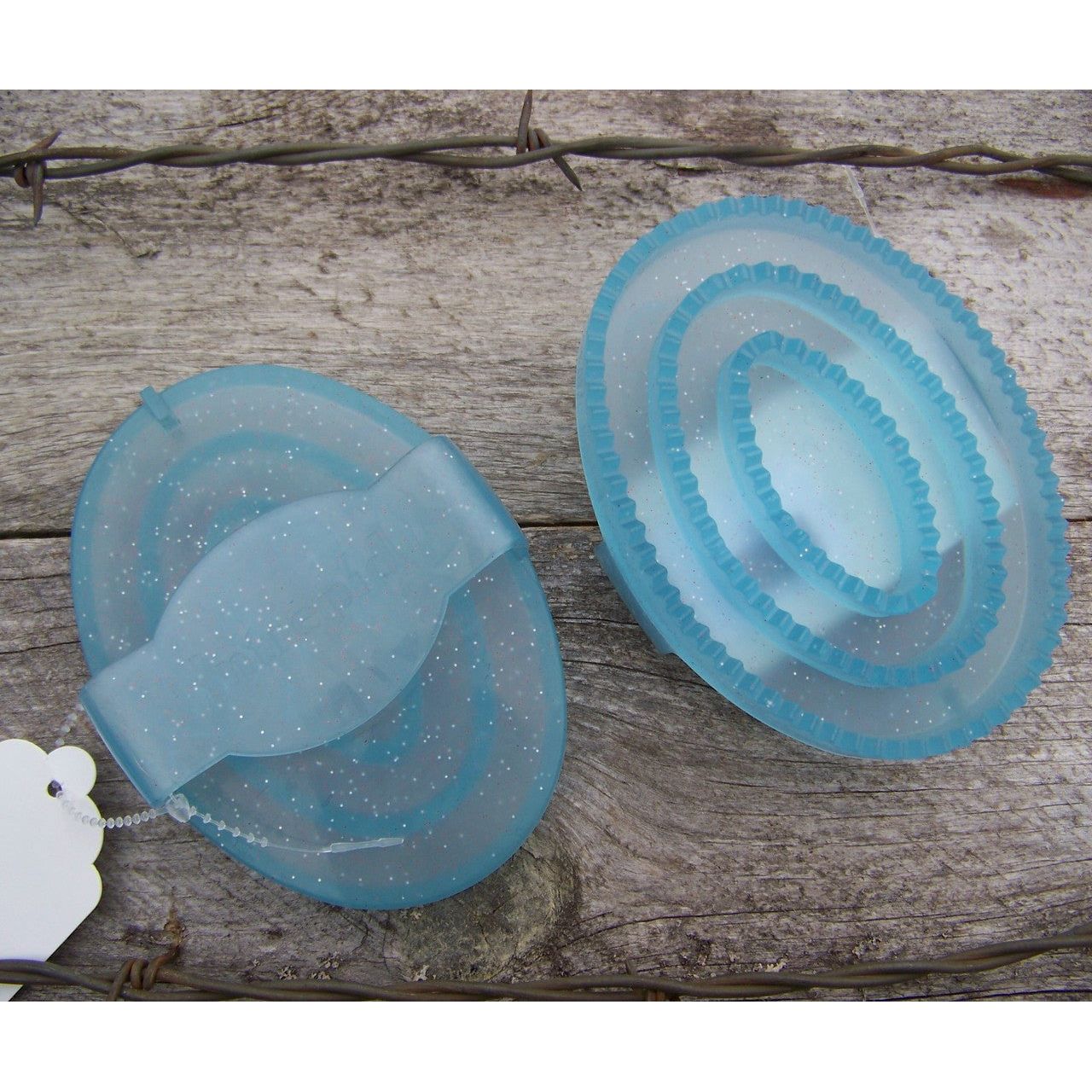 Medium gel rubber curries in pastel colors - blue, green, purple, and pink. Flecked with glitter. Perfect for the littel girl and her pony.