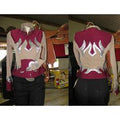 Designs by Batya - Custom Horsemanship Shirt in Size Small - Tan stretch base accented with maroon sparkly material, silver metallic edging, rim set rhinestones and dots. Zippers at cuffs to make sure you get a form firt. Tall elvis collar that velcros down to secure.
