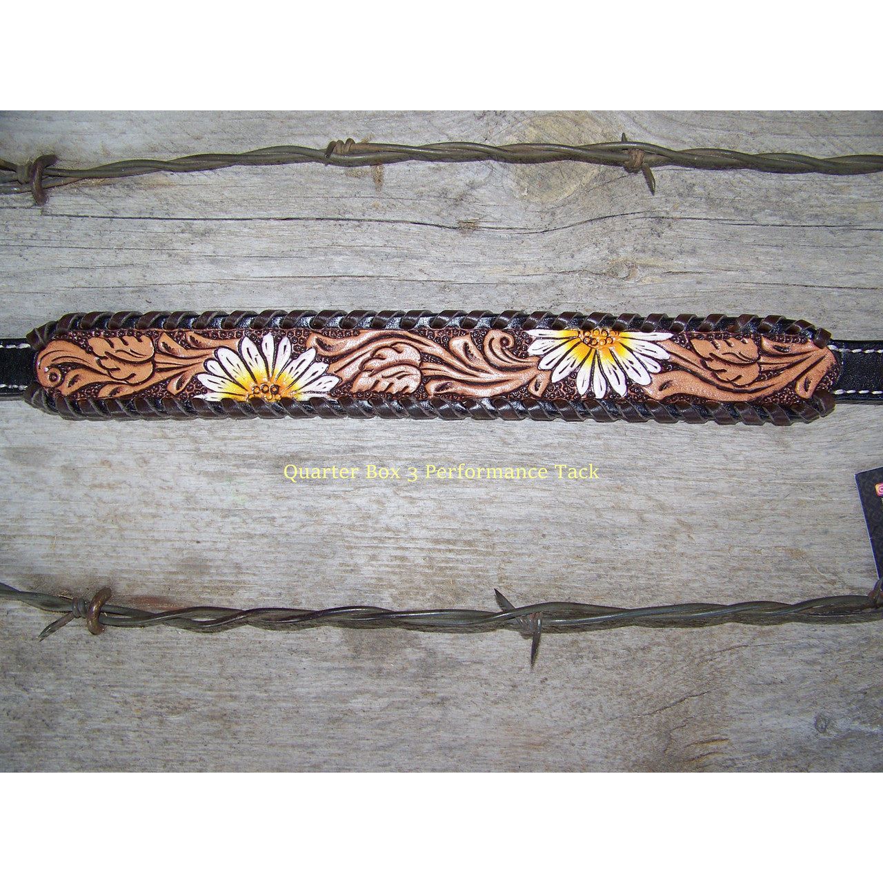 Dog Collar with hand tooling, hand painted daisy flower, two tone finish and brown whipstitch by Rafter T Ranch Company.