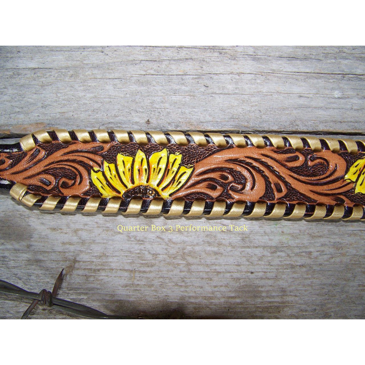 Dog Collar - Painted Sunflower, Metallic Whipstitch by Rafter T Ranch