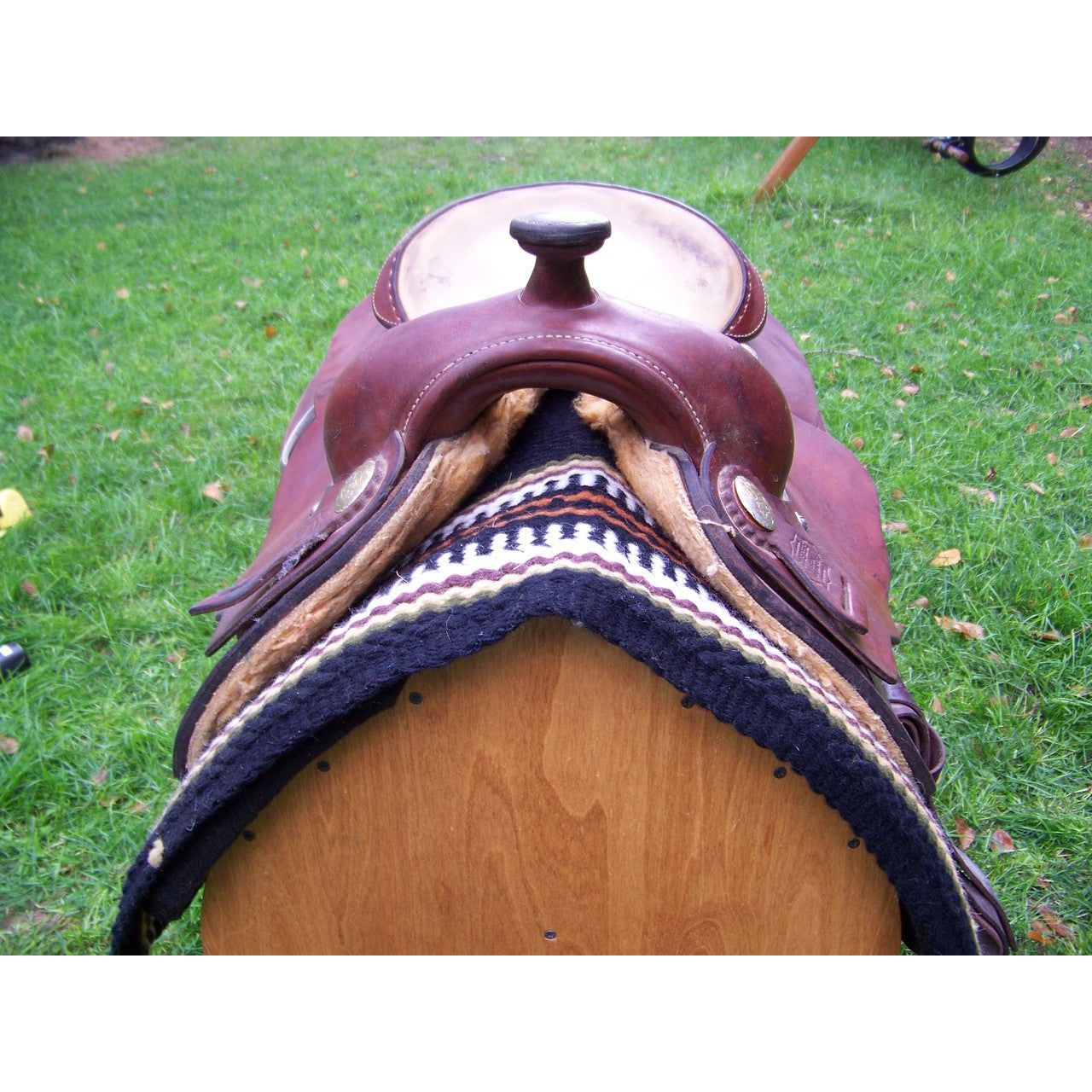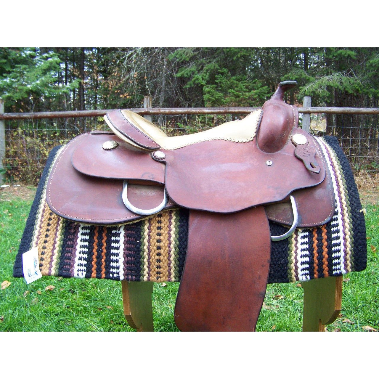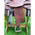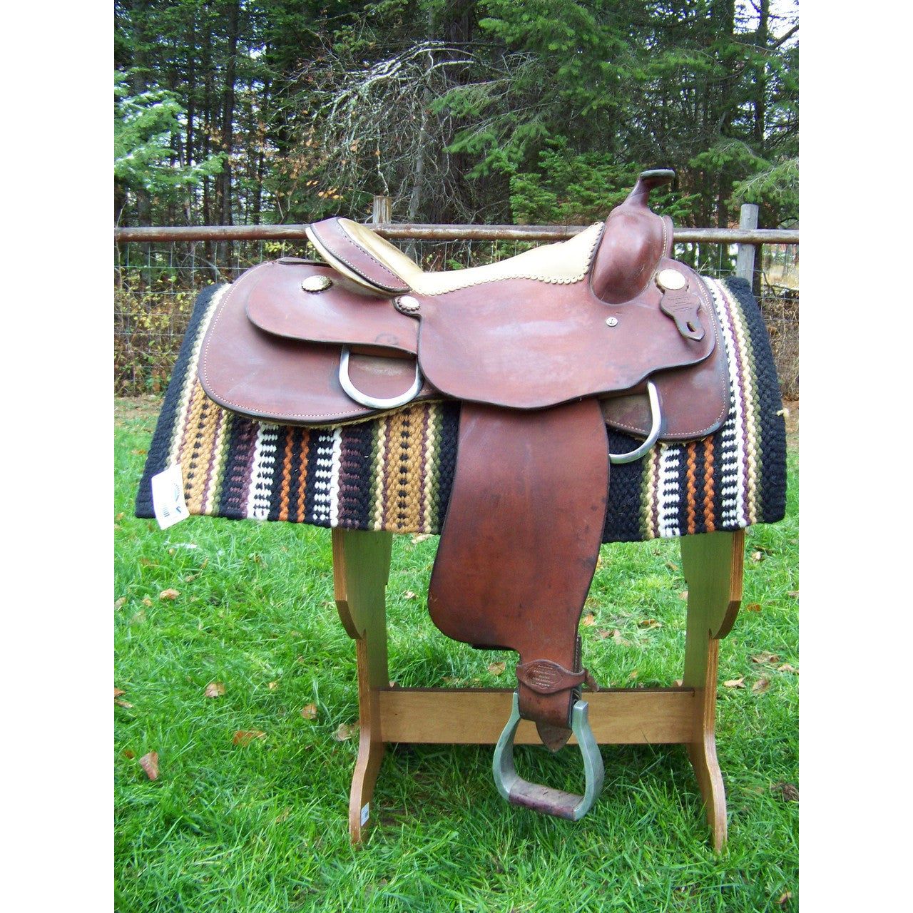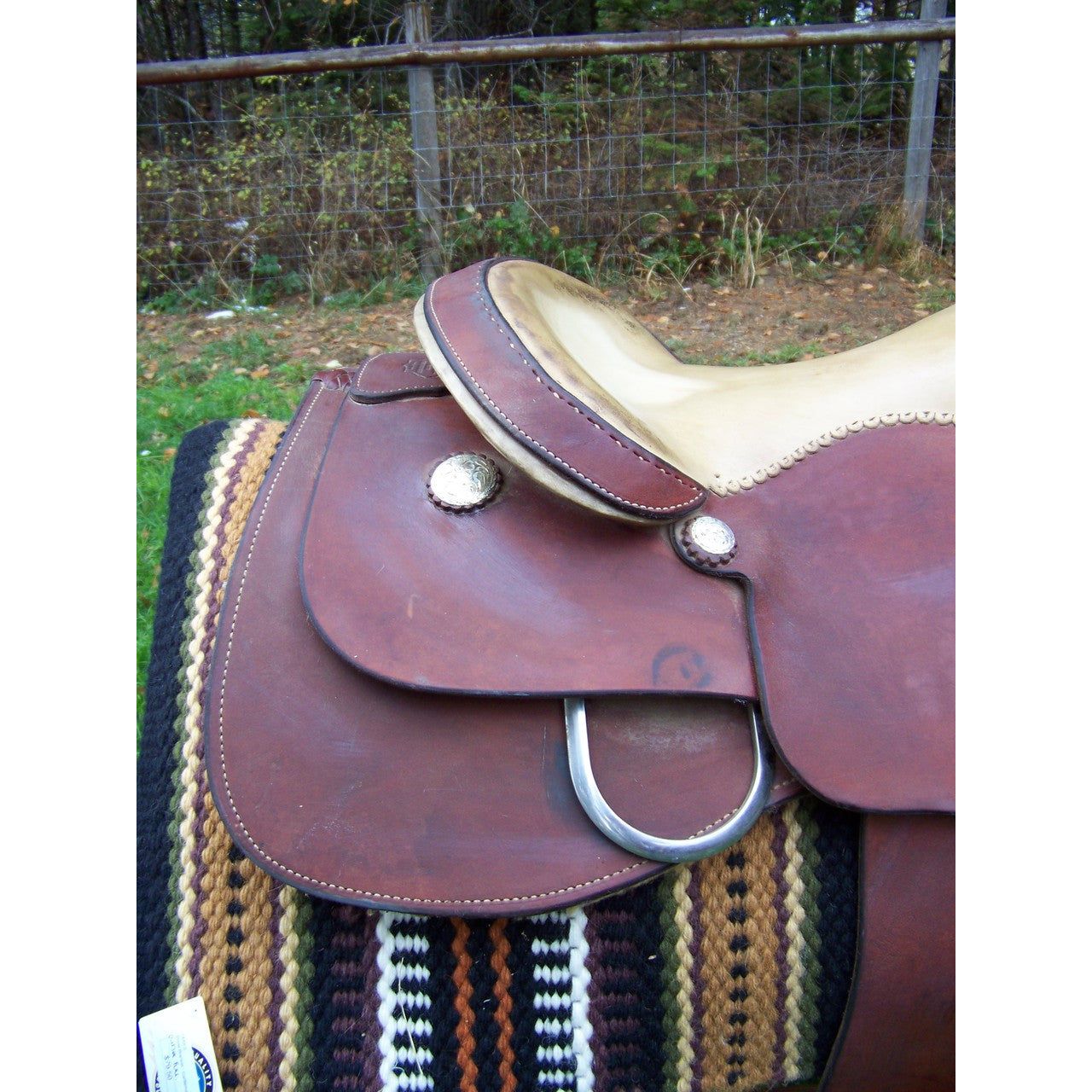 Love this work saddle as it fits close to the horse, lets you put your leg around them. Recommend for the older horses just due to being smooth leather, you don't get the stick that a rough out gives you. Seat measures 16.5" to the seam but it sits 15.75". Full quarter horse bars on this one. This is my own personal saddle and is not a consignment. Cinch not included. Shipping in the US will run $60. Shipping outside the US is at cost plus insurance. We accept PayPal and credit card.