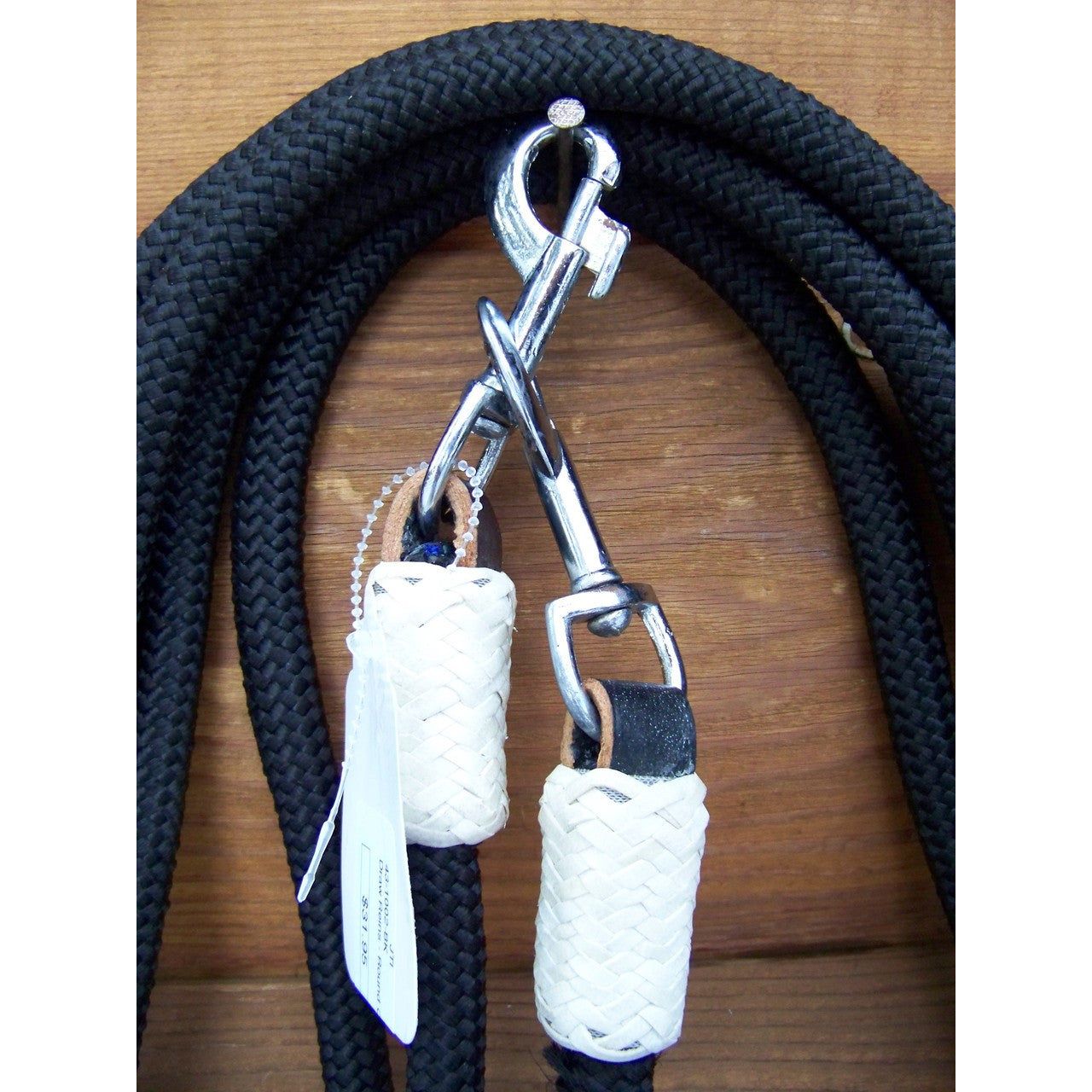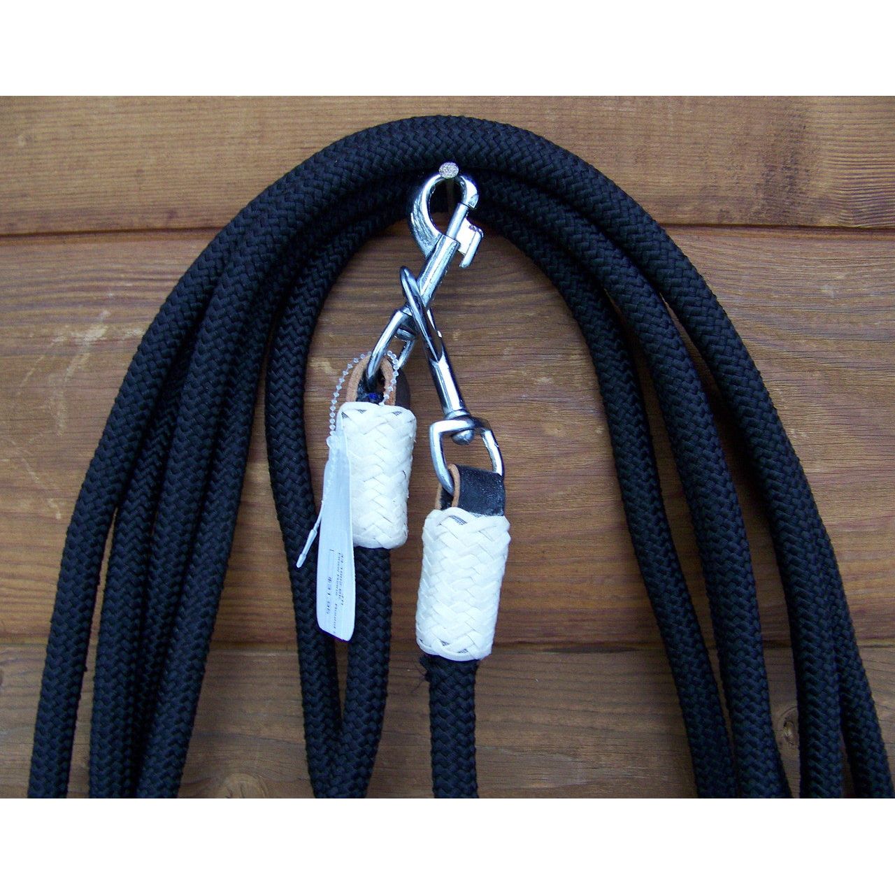 Cord Draw Reins - Great for controlling young horses and developing correct headset. Strong cord draw reins with sliding snap bit connectors and snap ends for attaching to saddle or girth. Braided rawhide.