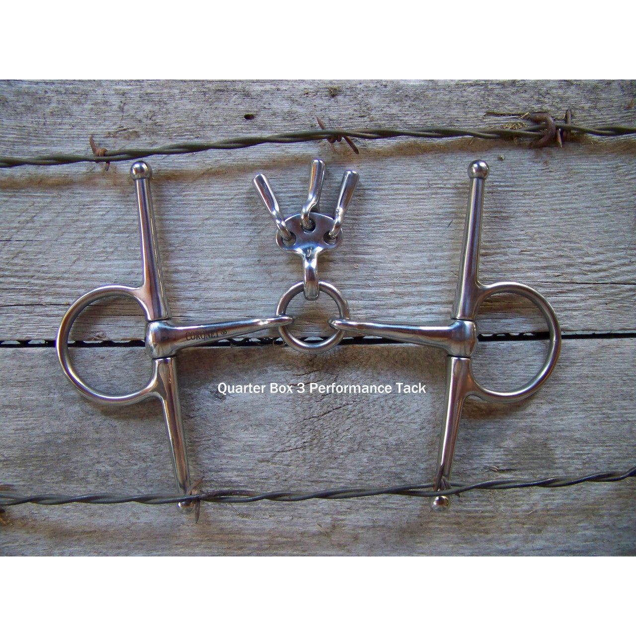 The Full cheek, has simple action on the lips. The main feature of the full cheek is to help steering by giving lateral control. This bit helps the young horse not used to aids or the adult horse presenting lack of flexibility. This bit has a 11 mm mouth.
