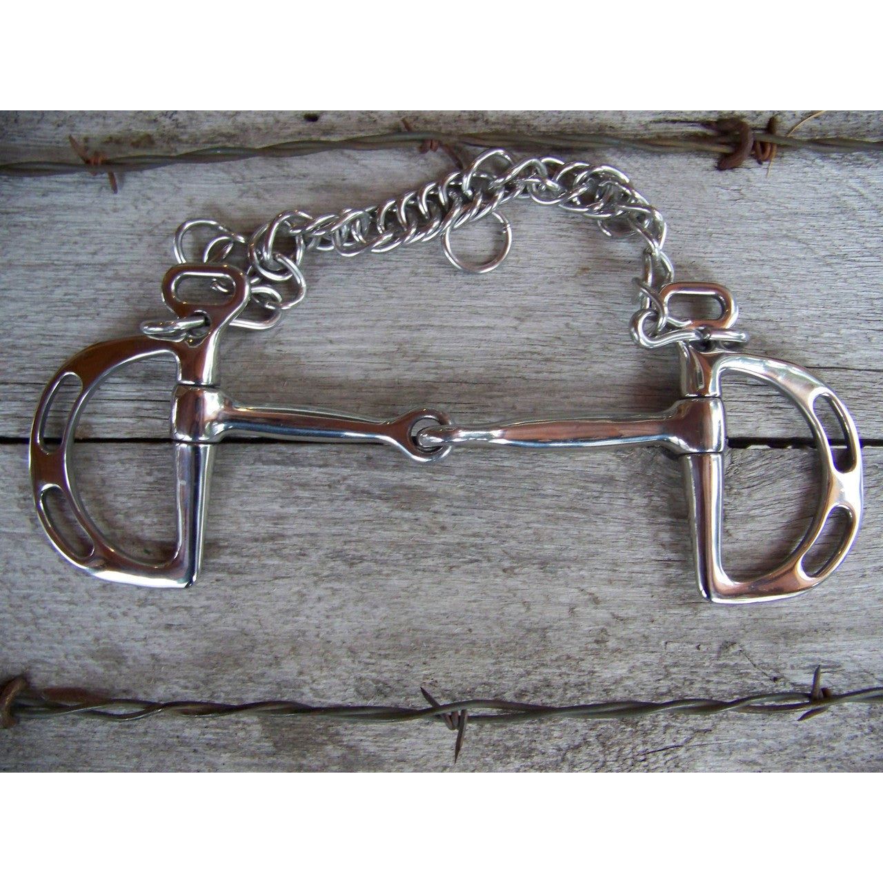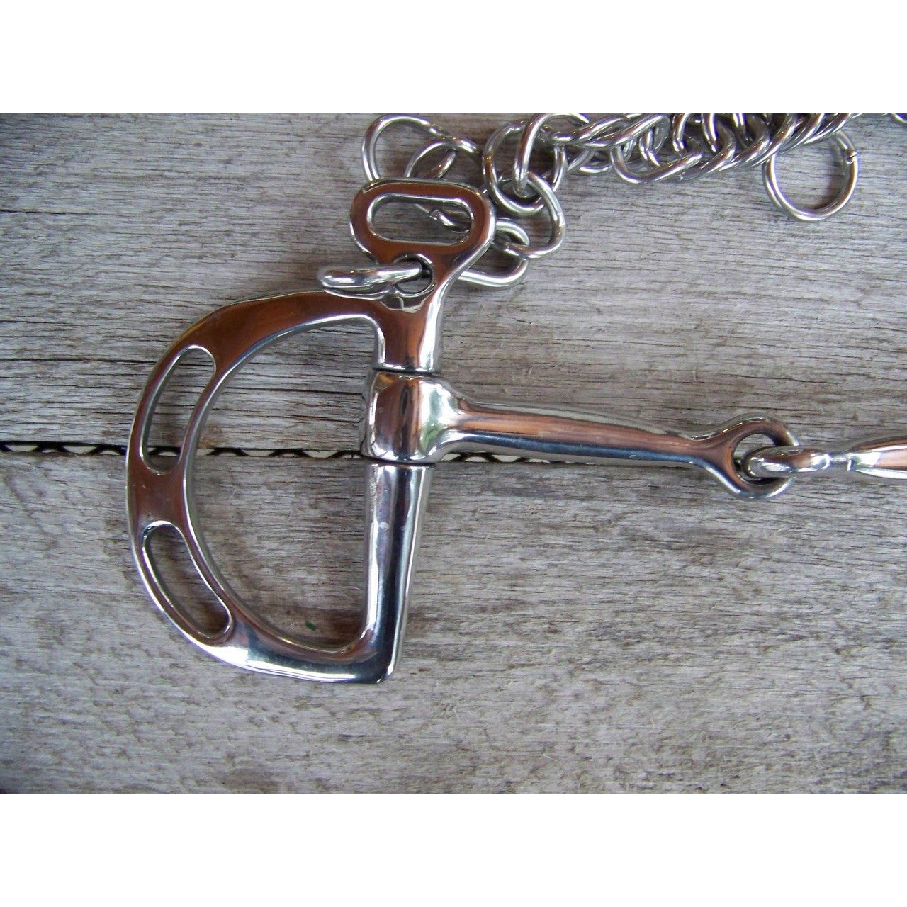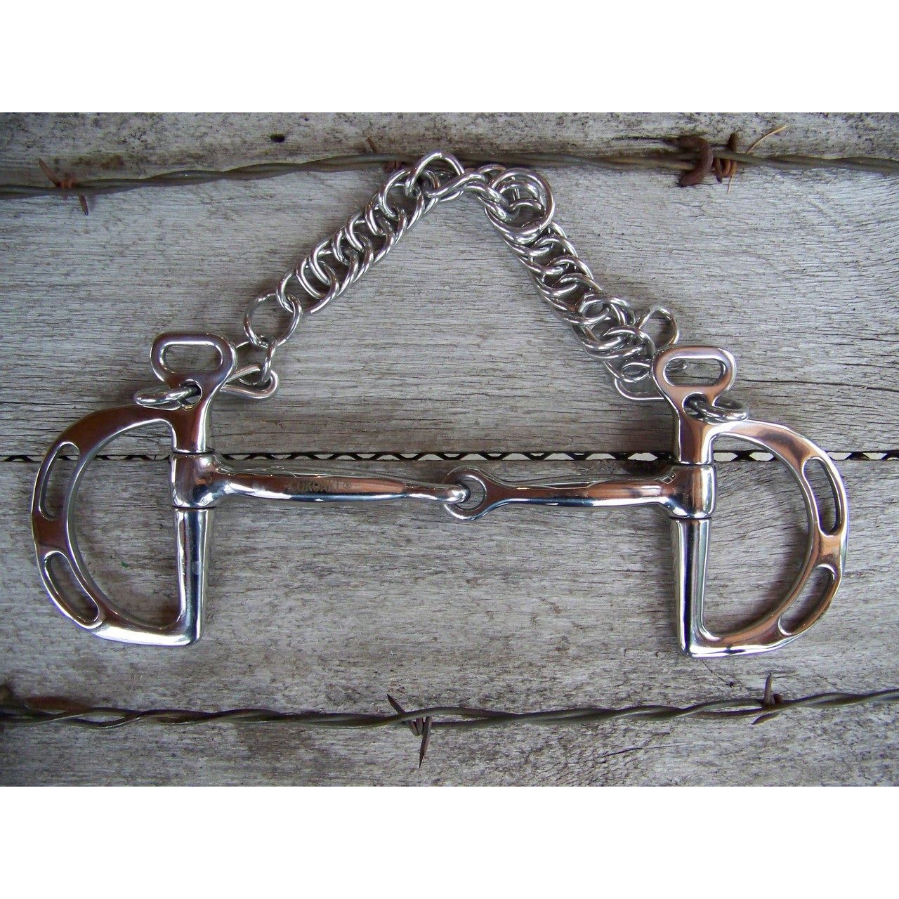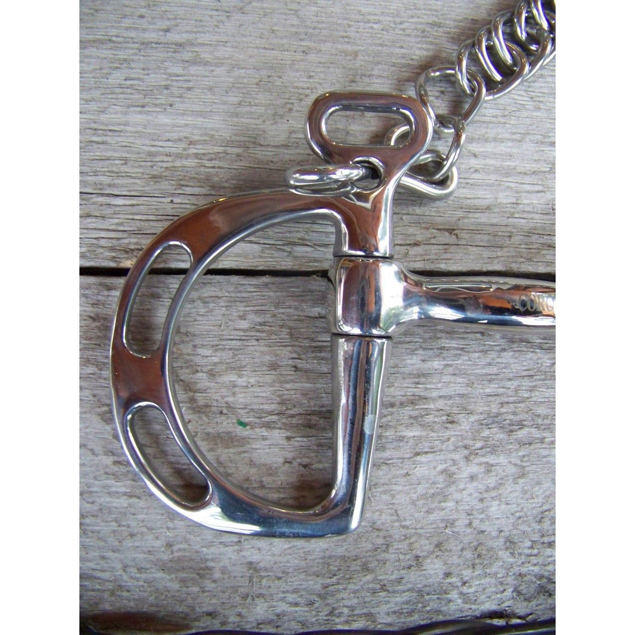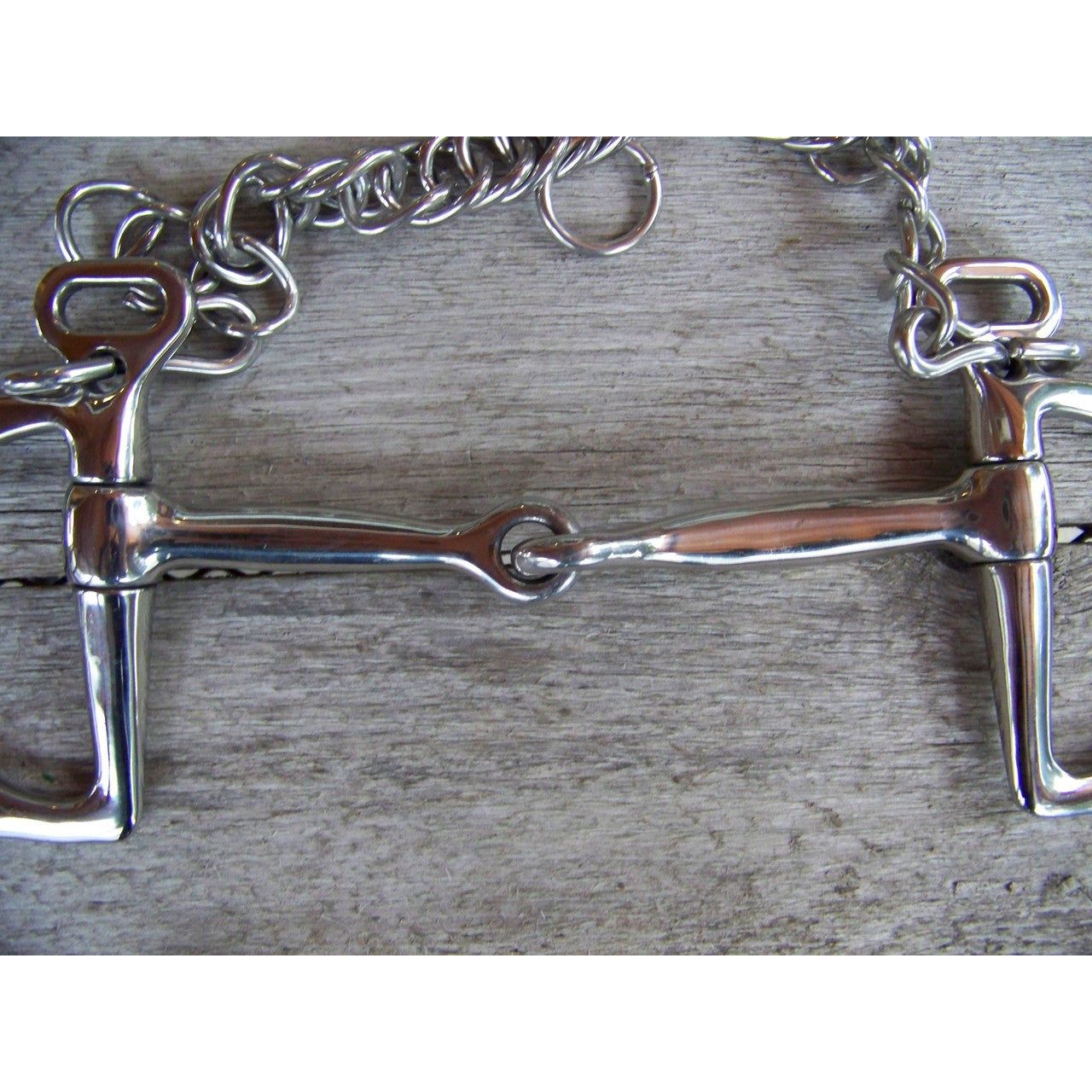 Stainless steel kimberwick snaffle in a 5.5" mouth piece. Comes with stainless steel curb and curb links.