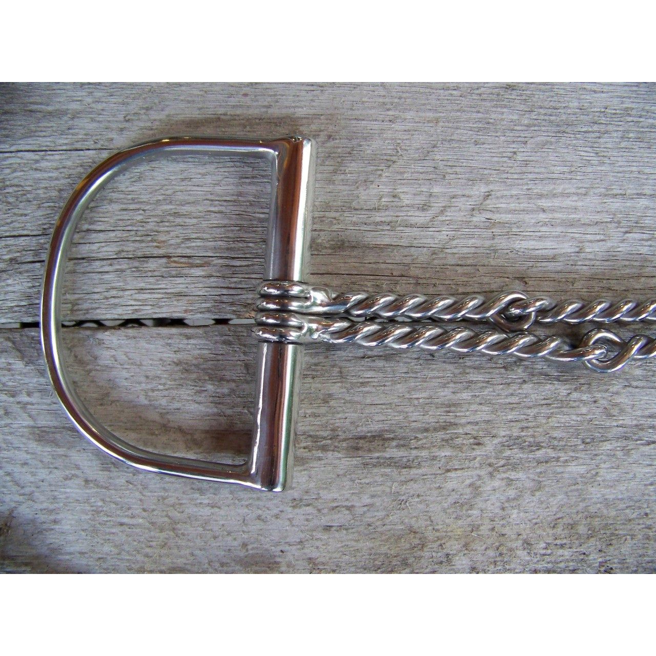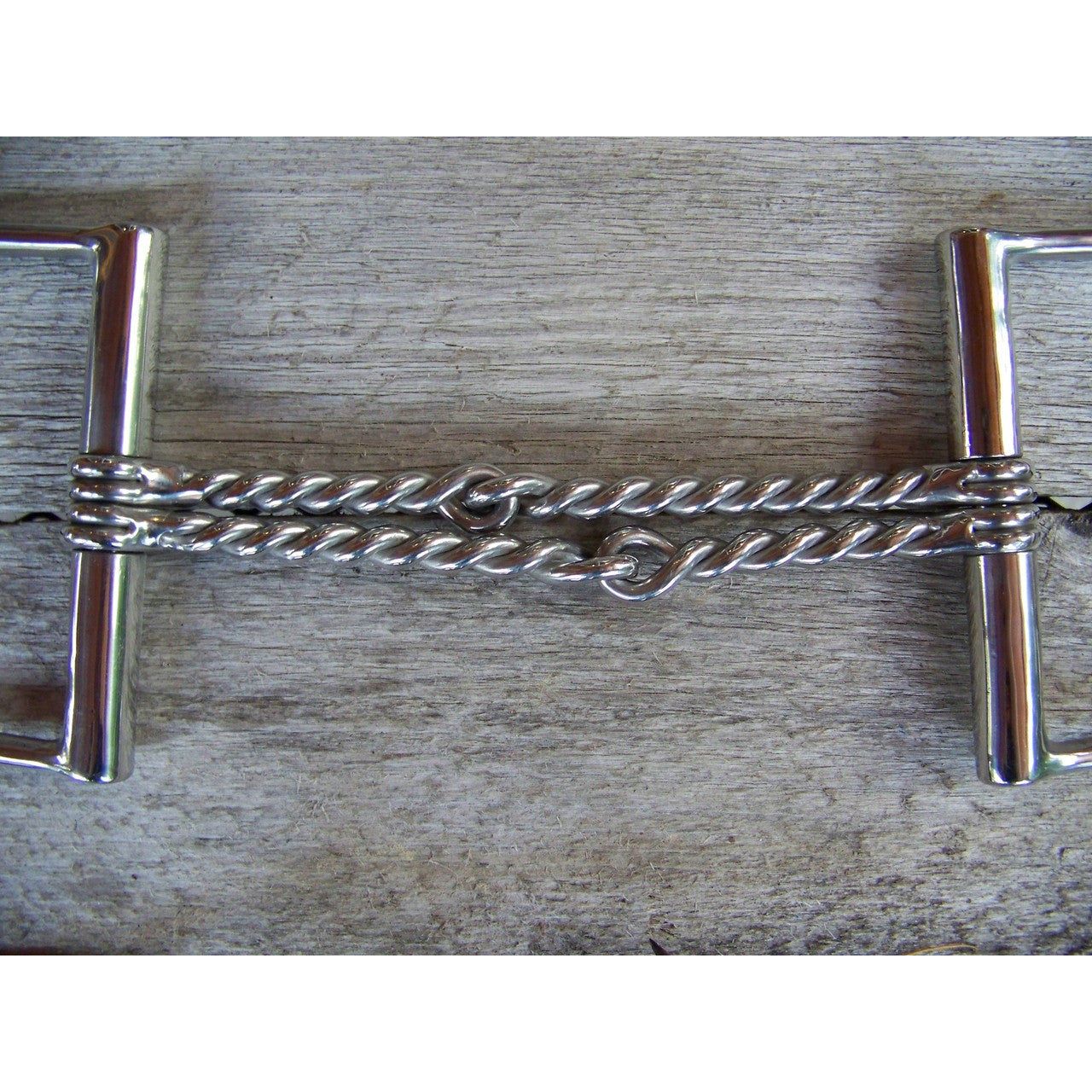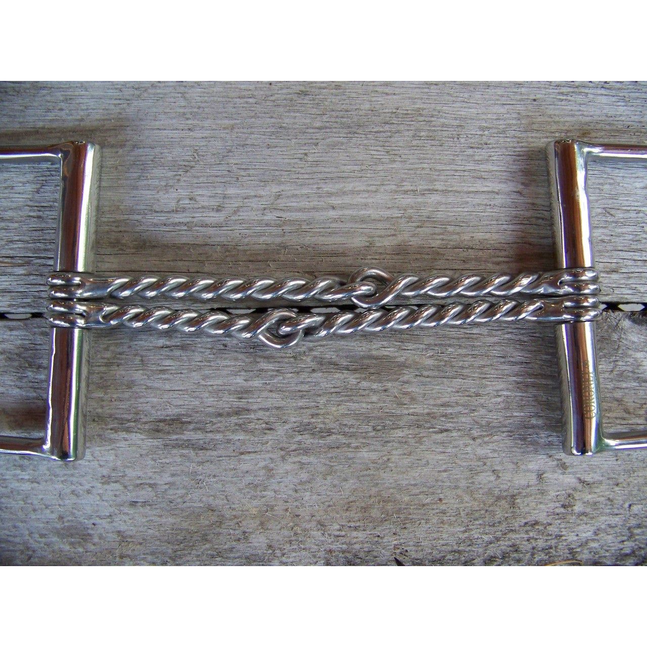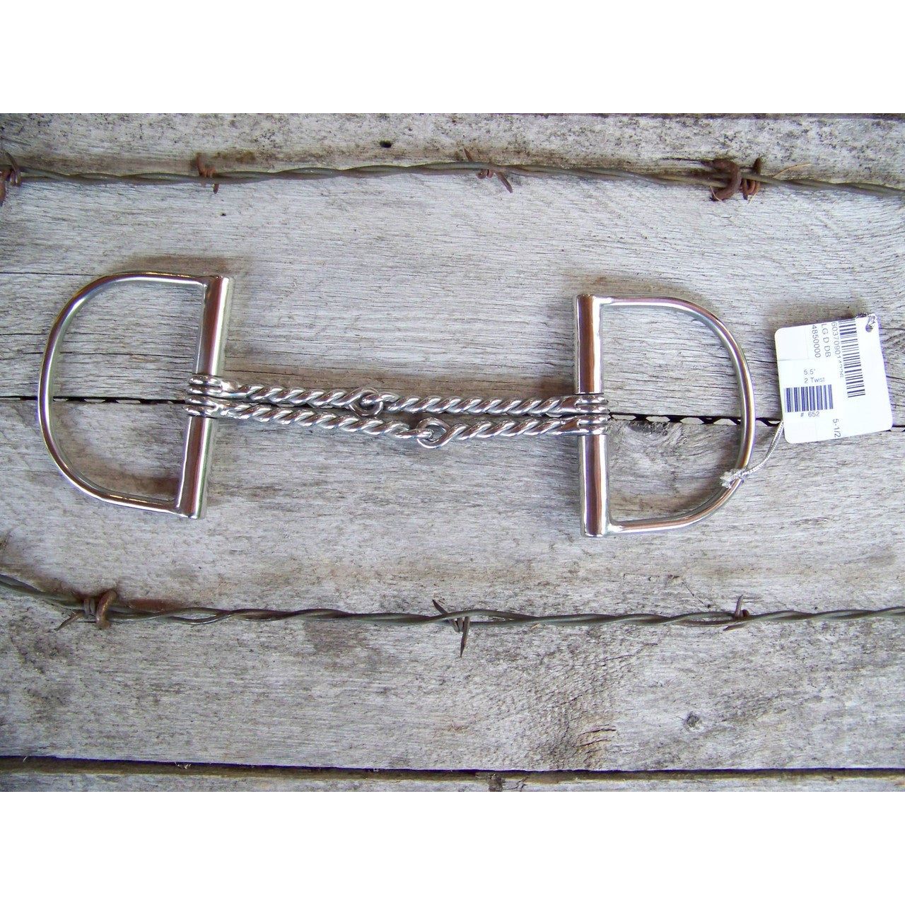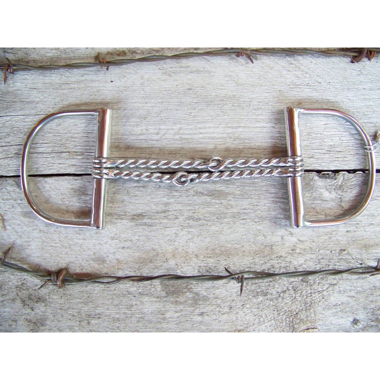 Stainless steel large dee bit with a double twist mouthpiece that measures 5.5 inches.