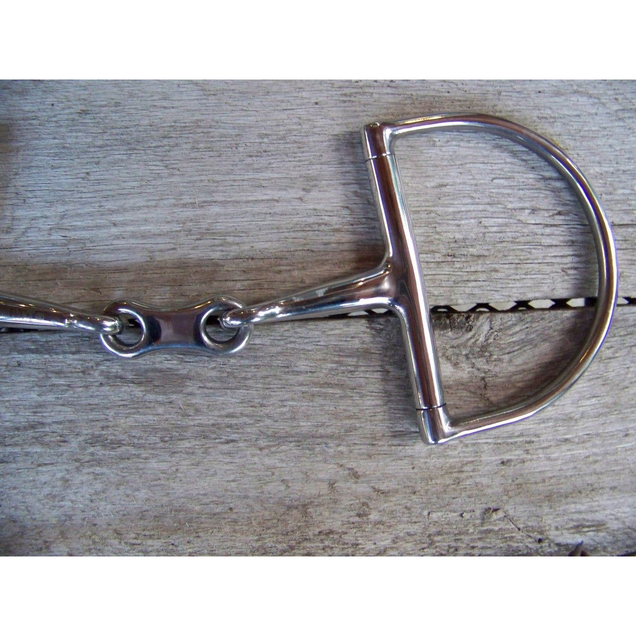 Stainless steel large dee snaffle with french link mouthpiece. Measure 5" wide.