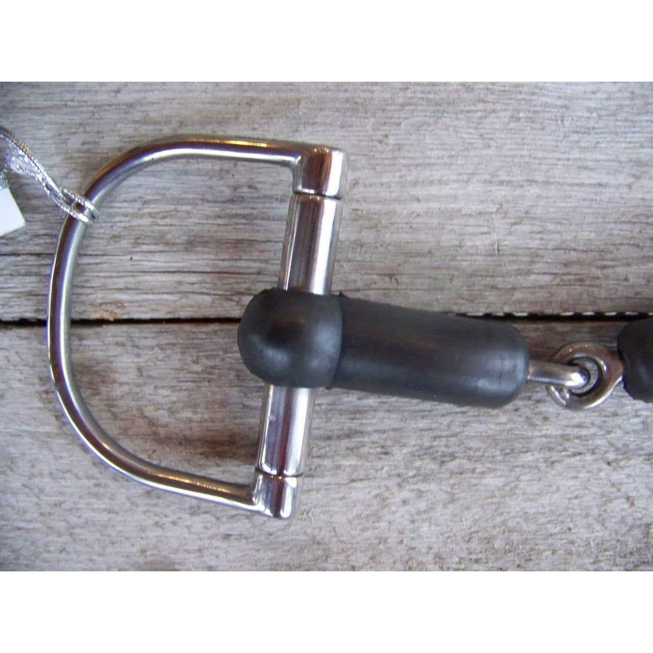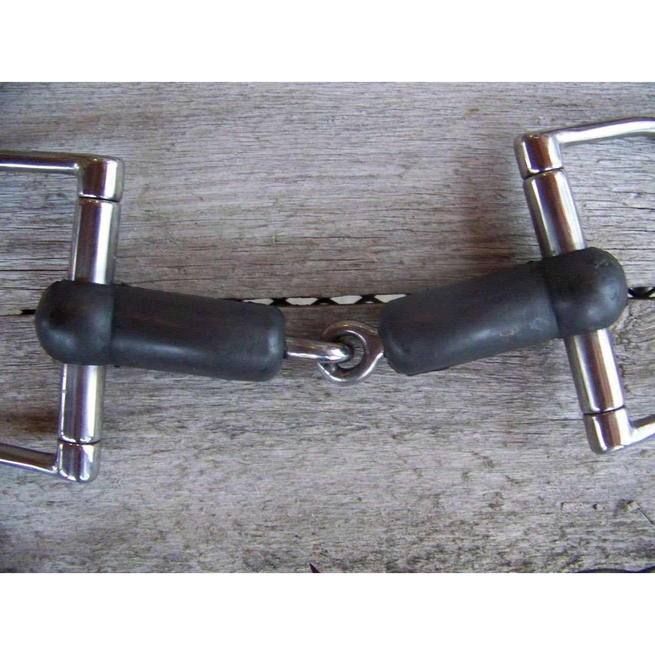 Stainless steel large dee snaffle with rubber mouth. Measure 5 inches wide.