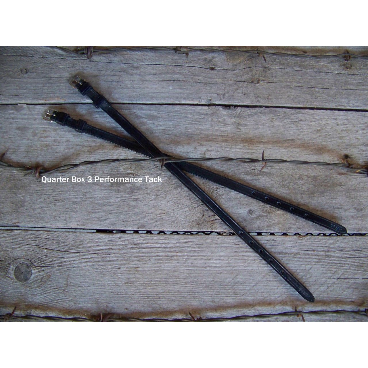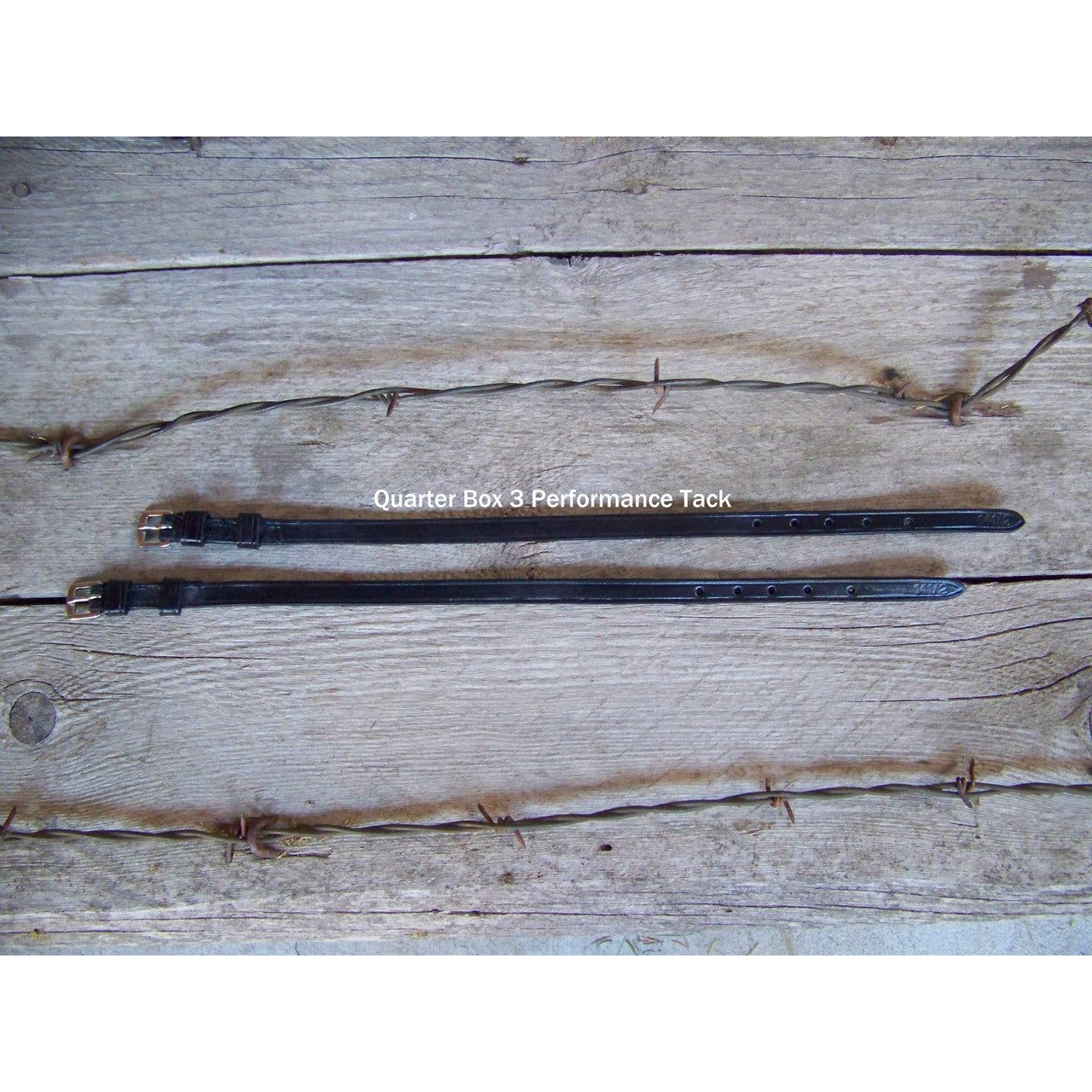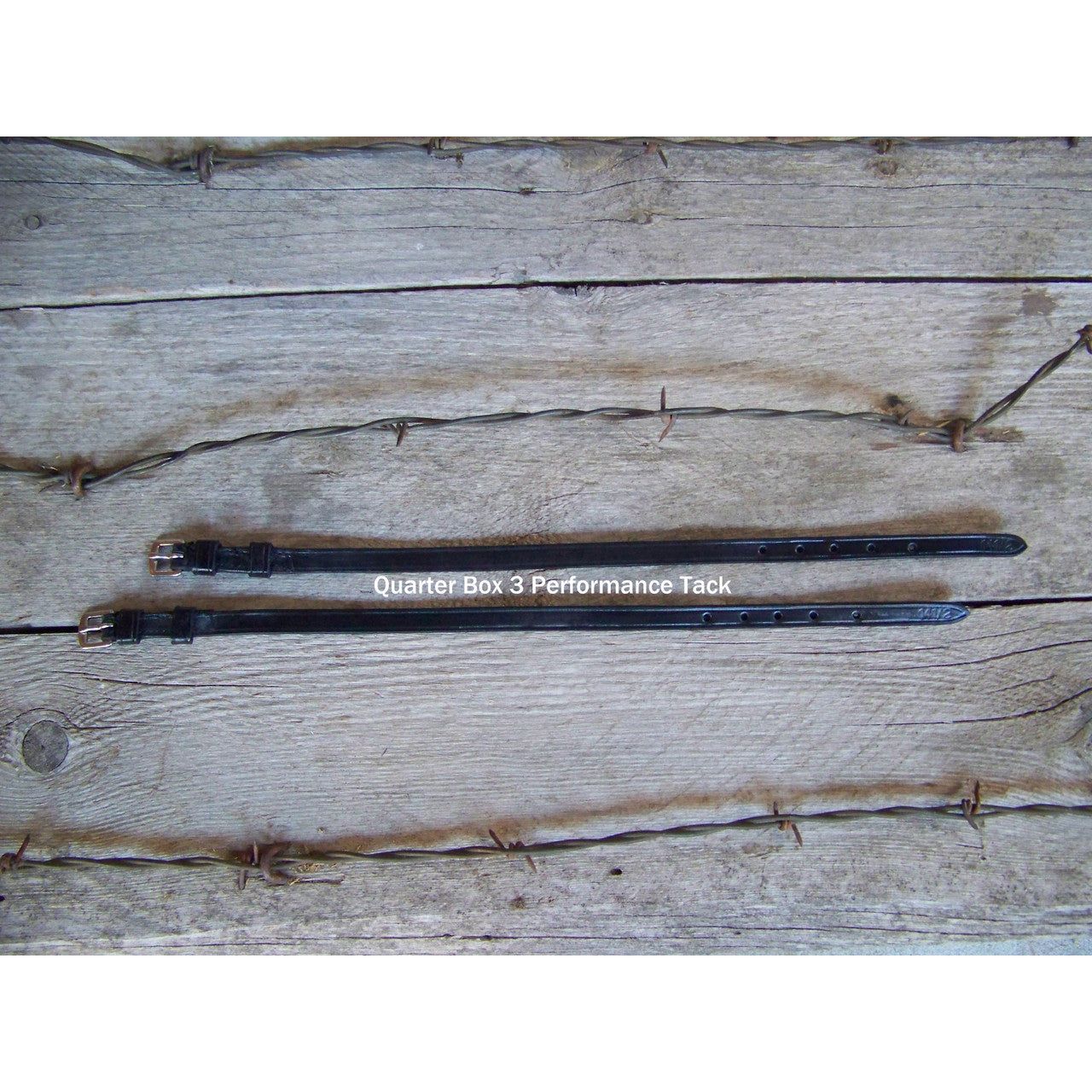 Black leather spurs straps for the youth that measure 15" long from buckle to tip.