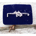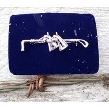 English riding crop with double silver horseheads. Measures 2 5/16" across. Beautiful detail on this pin!