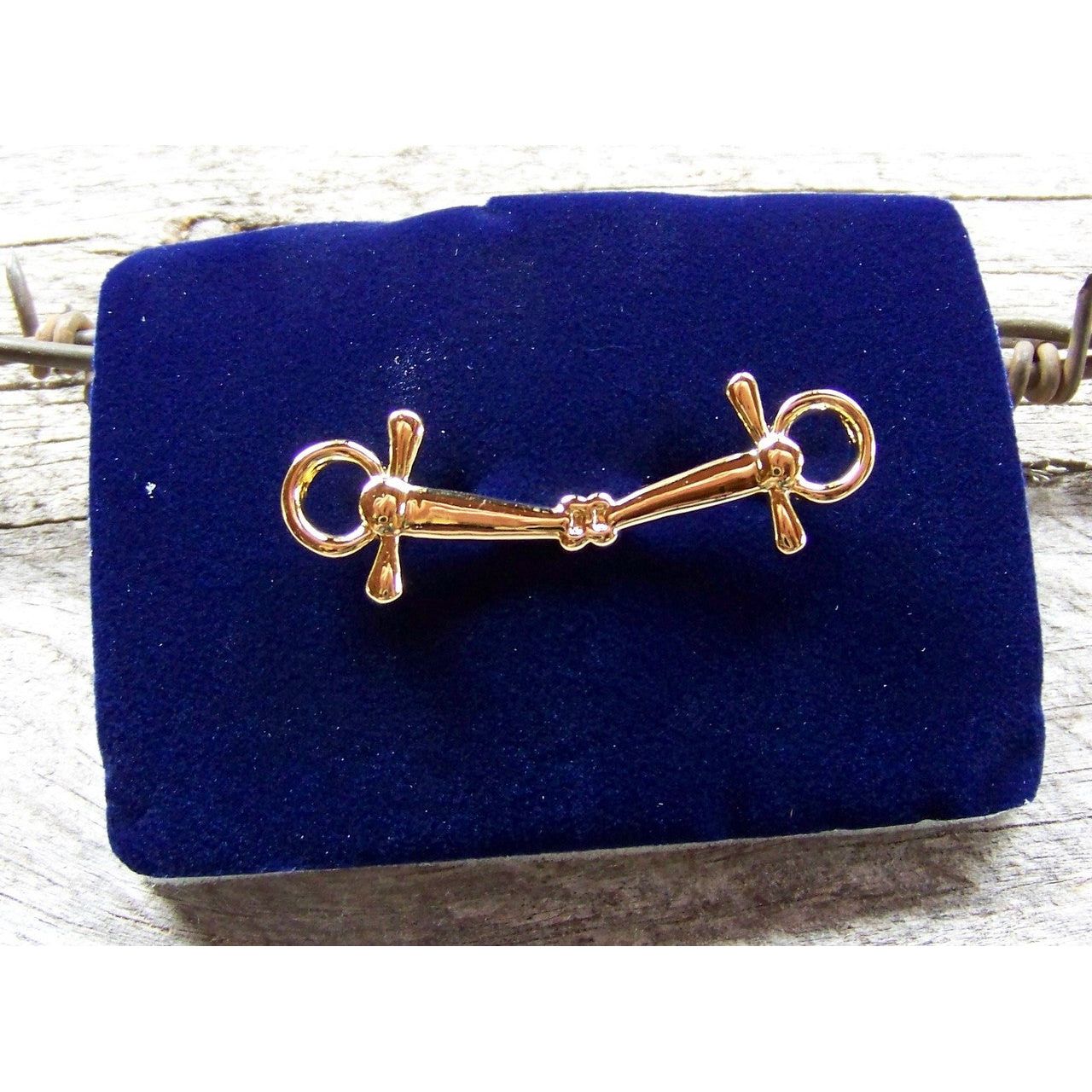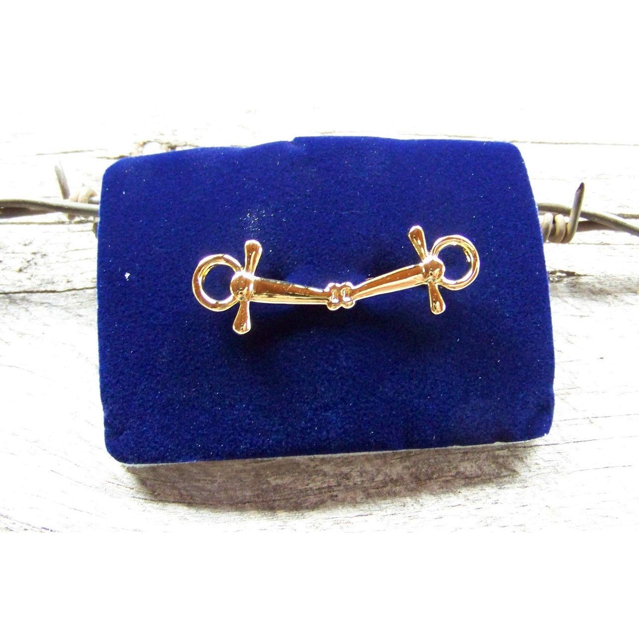Gold full-cheek snaffle stock pin measures 1.75" across.