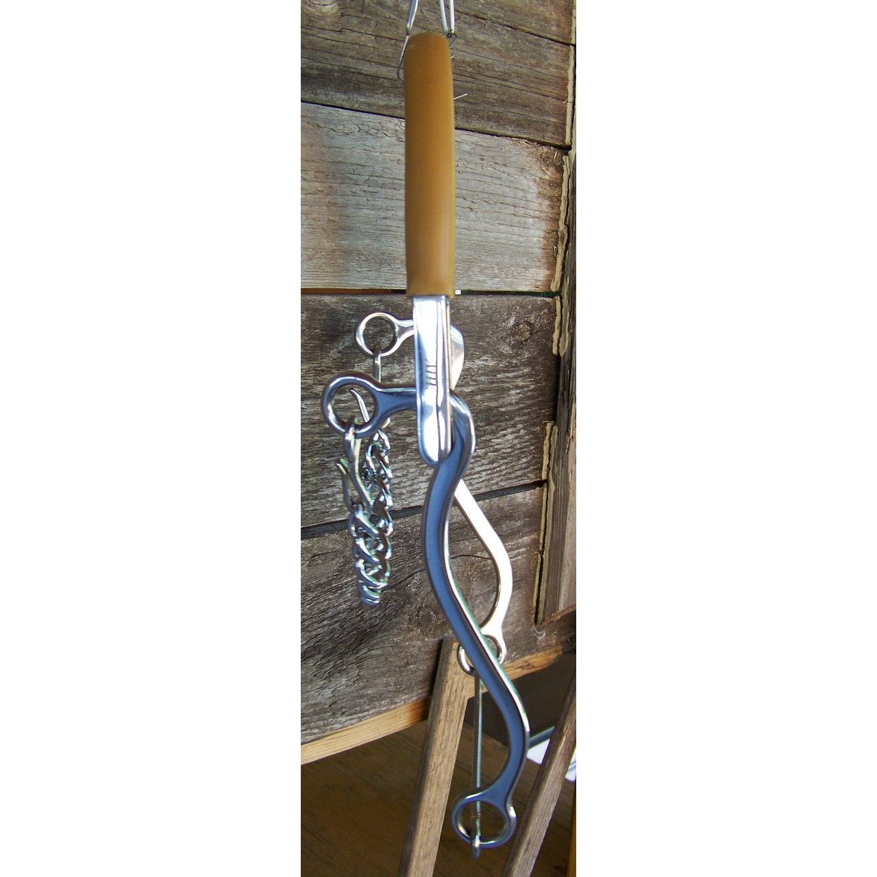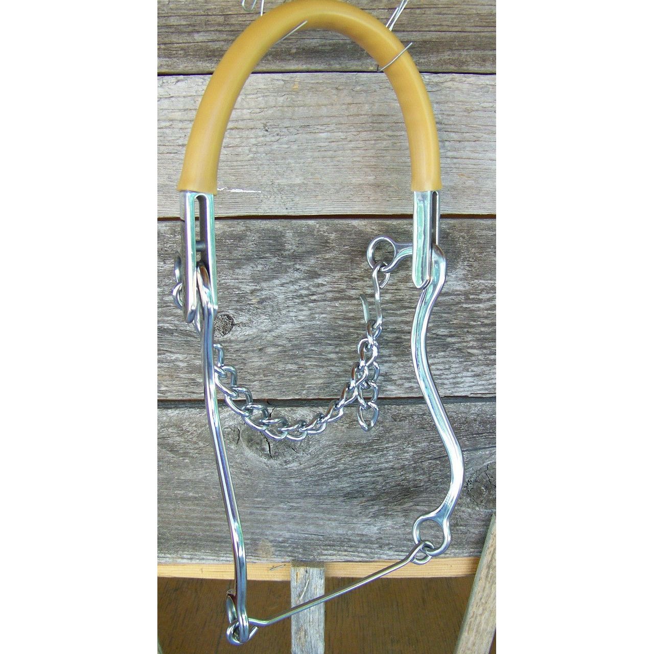 Stainless steel hackamore, gum rubber noseband, 8 1/2" cheeks.