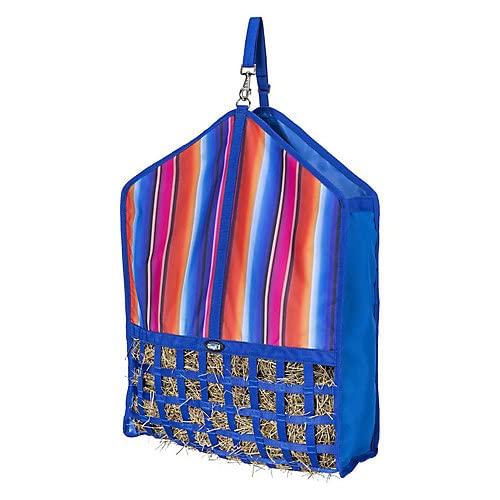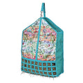 Why have a boring hay feeder when you can have one in a fun print! Our web hay feeder is made with durable poly material with quality nylon webbing. The lower portion of this bag offers 2" x 2" openings for happy munching at a slower, more natural pace. The webbing wraps onto the bottom too, letting hay dust fall out instead of being inhaled.