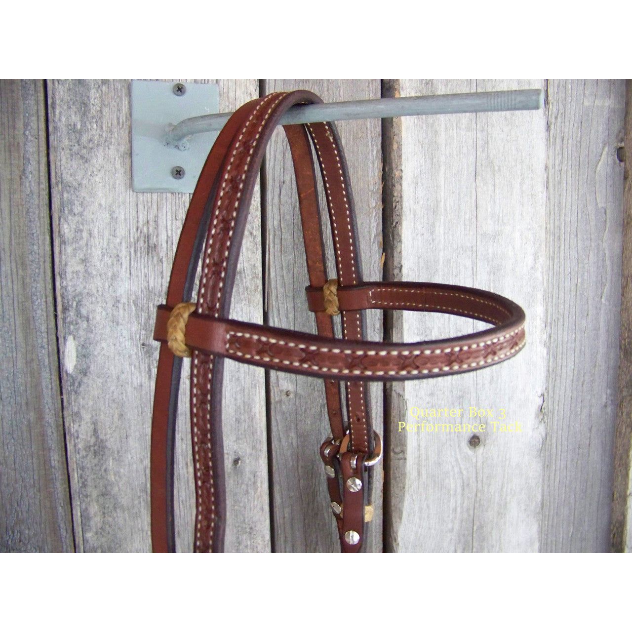 Headstall - Browband Dark Oil w/Rawhide Braid Keepers (Barbwire)