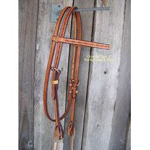 Nice browband headstall that is stitched and lined in light oil. Rawhide braided keepers and tooled.